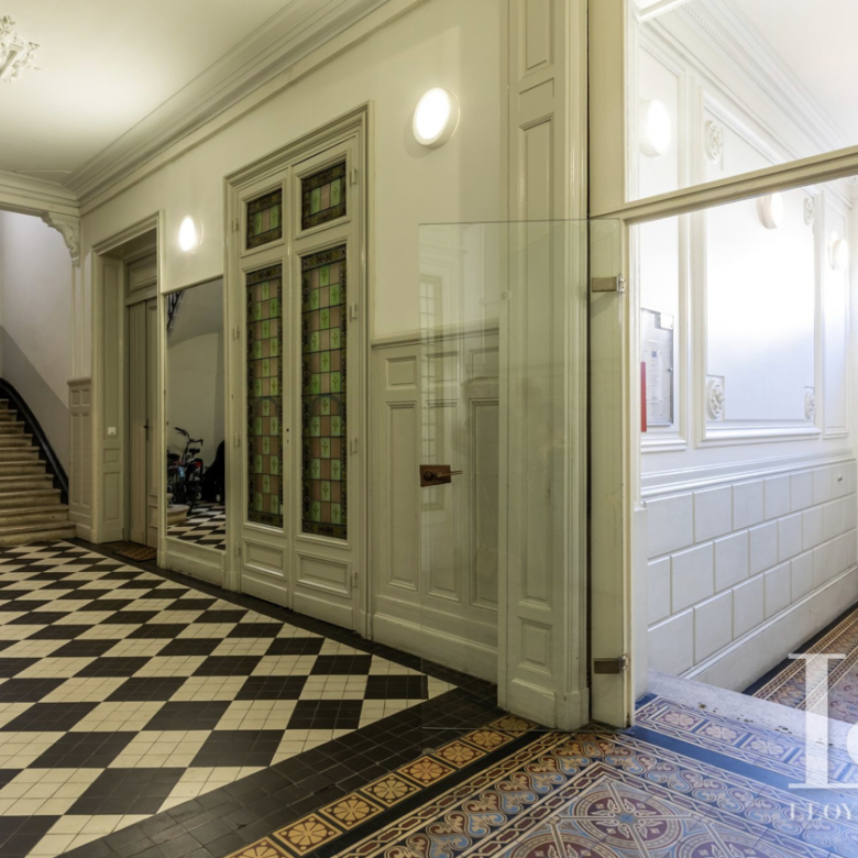 Les prestations anciennes sont préservées : parquet massif, hauteur sous plafond, moulures et vitraux d’exception.