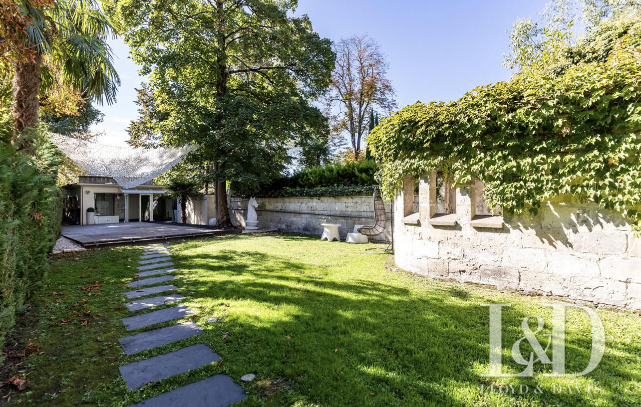 L’espace extérieur est un véritable havre de paix insoupçonné dans ce quartier recherché. En contrebas d’une belle terrasse en pierres, découvrez un magnifique jardin de près de 400 m². Une ancienne chapelle classée invite au recueillement ou laisse libre cours à des projets personnels.