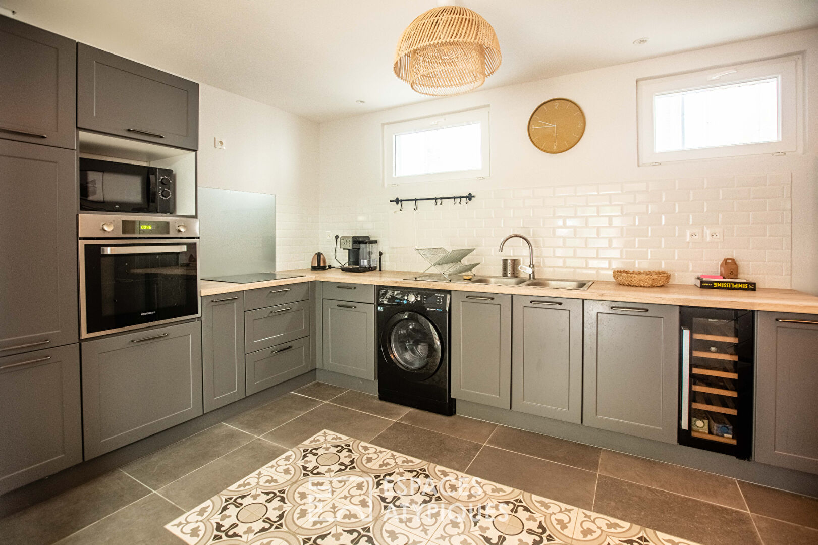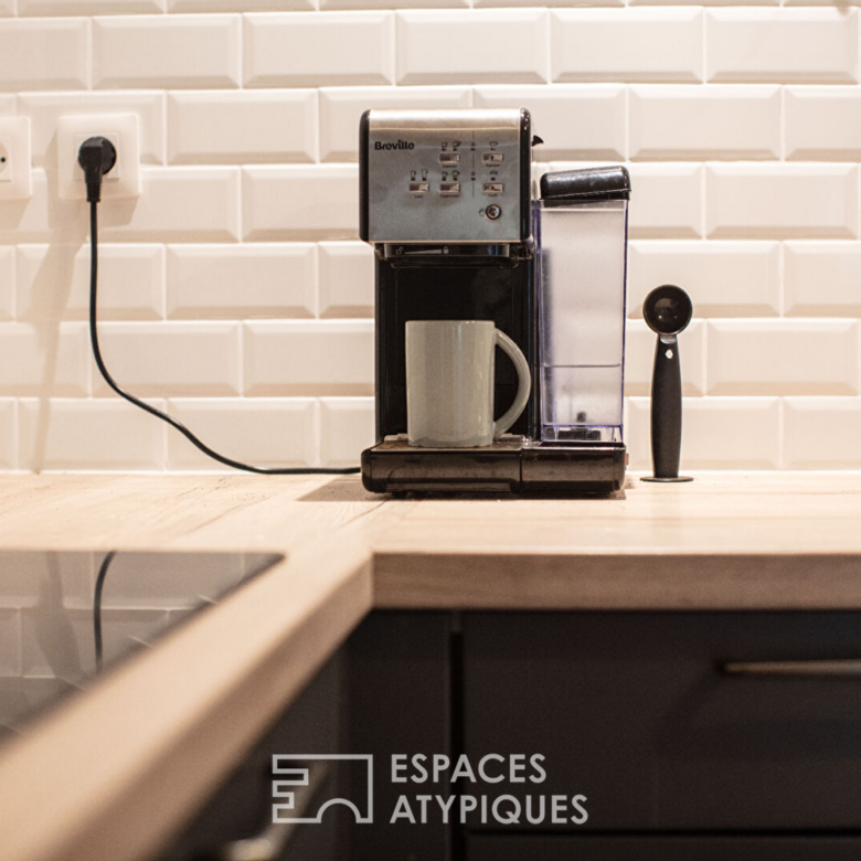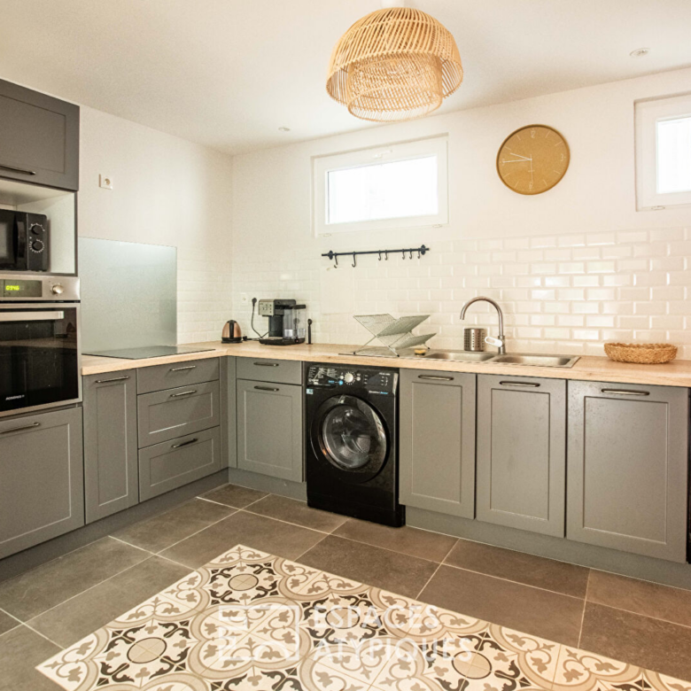 La cuisine moderne, à la fois fonctionnelle et élégante, s’ouvre harmonieusement sur le salon-séjour, favorisant les moments de partage et de convivialité.