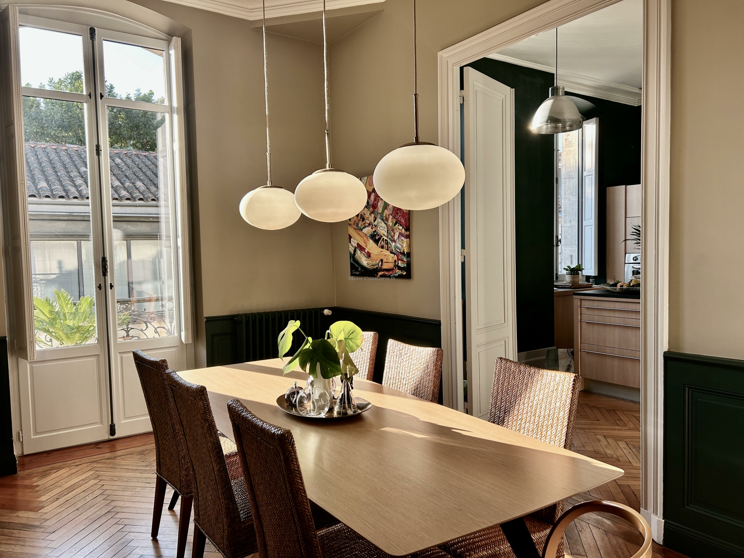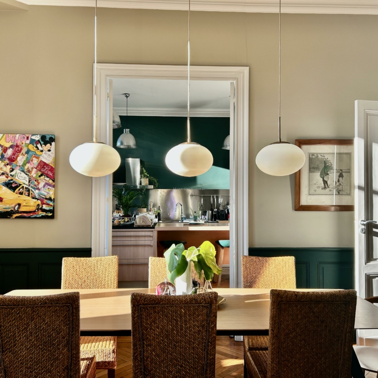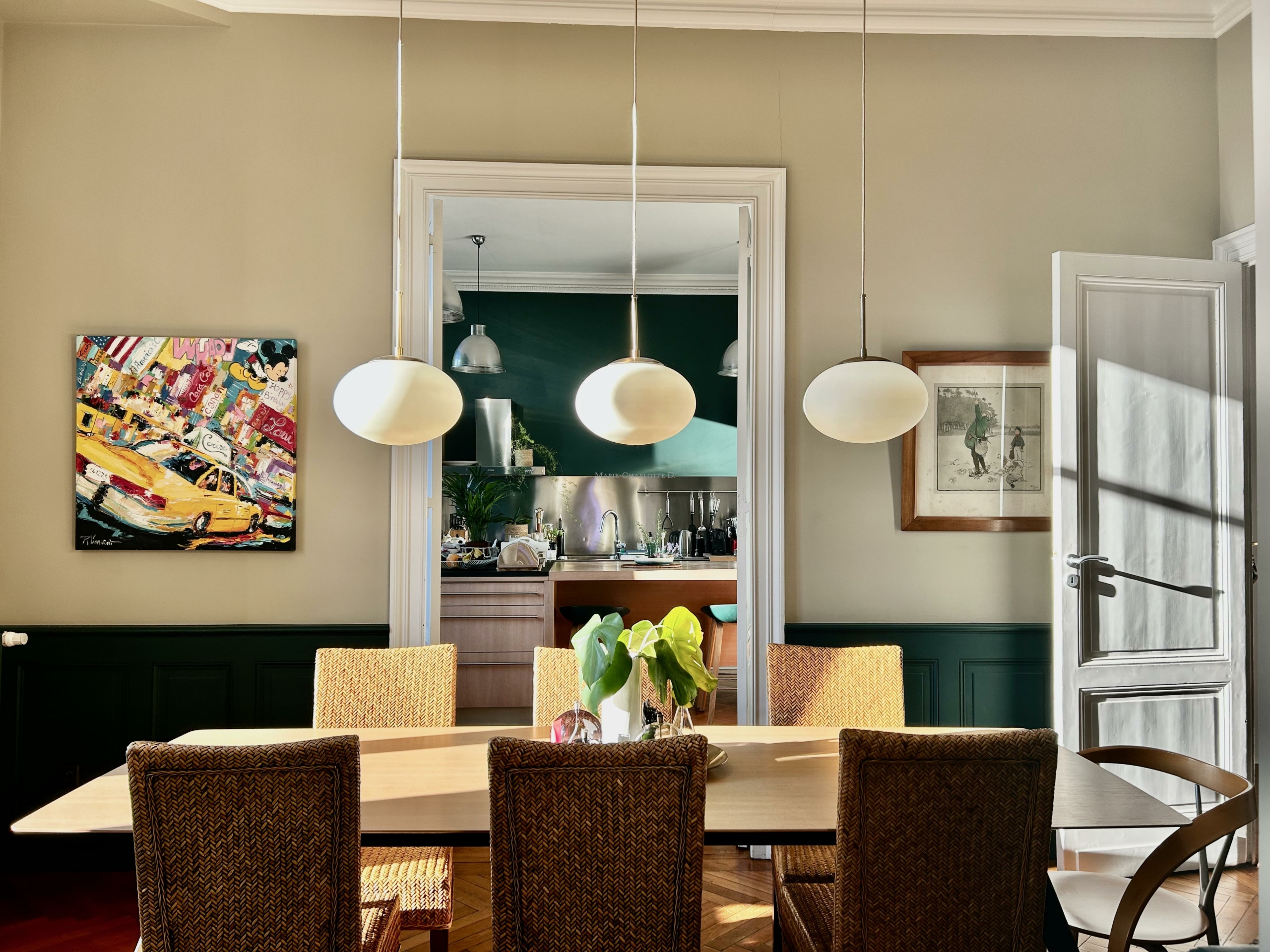 L’espace de vie se compose d’un triple séjour en enfilade intégrant la cuisine, la salle à manger et le salon, idéal pour recevoir et profiter d’une vie conviviale.