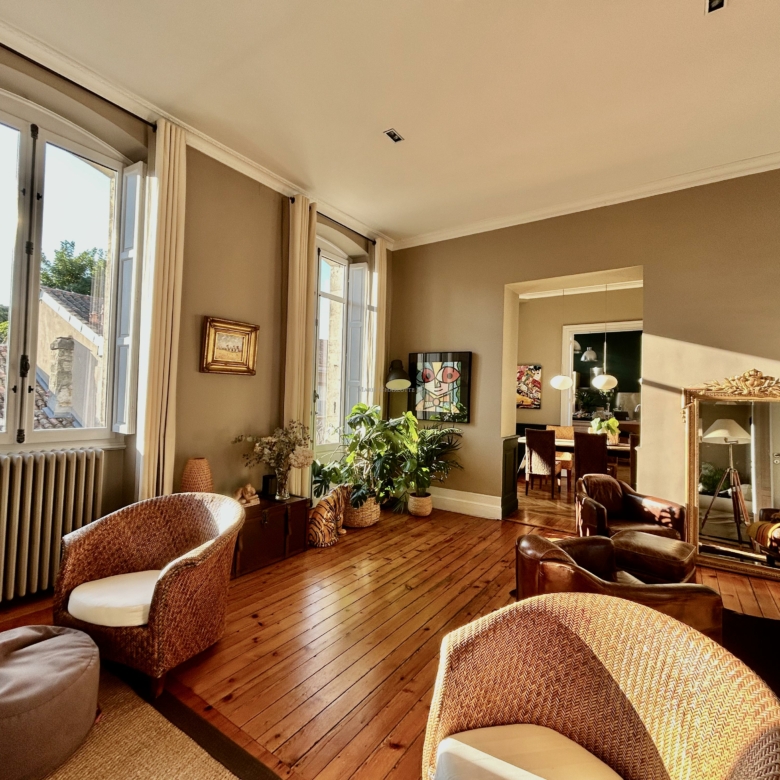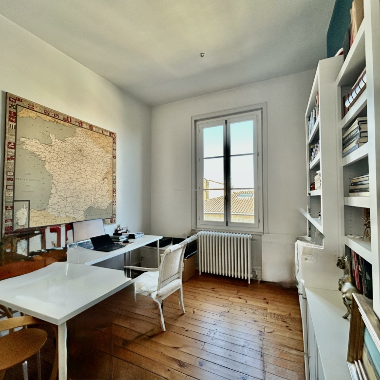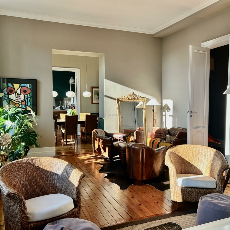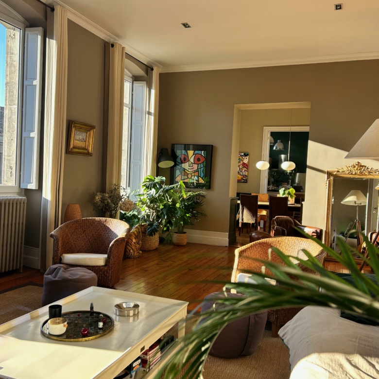 Idéalement situé à Bordeaux, dans le très recherché quartier du Jardin Public – Fondaudège, rue Francis Martin, ce superbe appartement en duplex se trouve au 2ᵉ et dernier étage d’un bel immeuble en pierre.