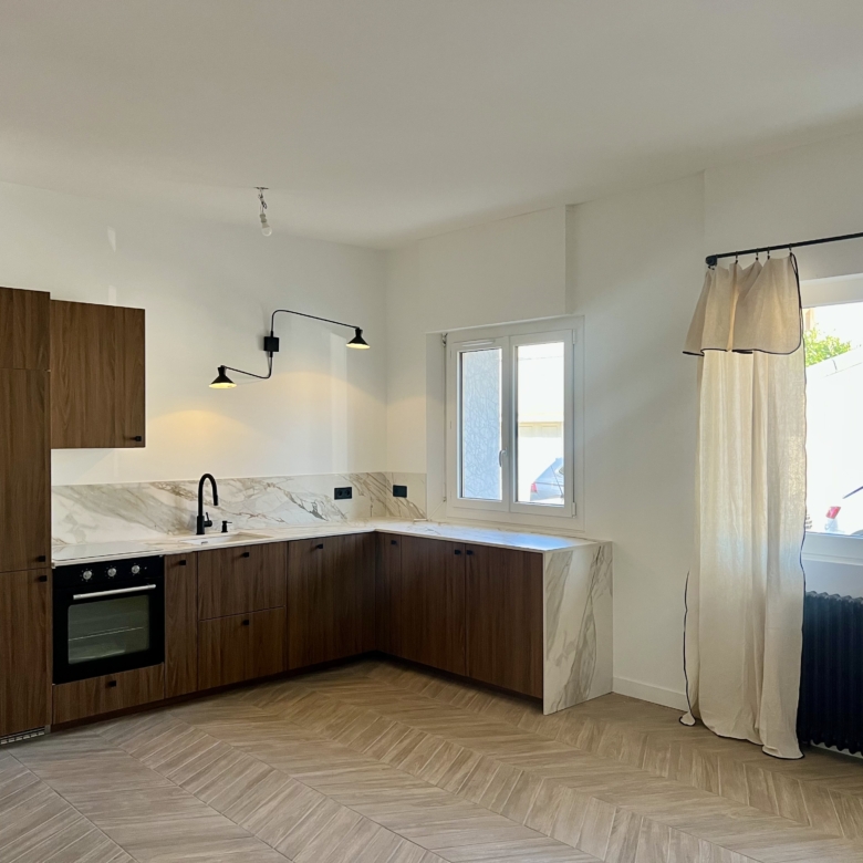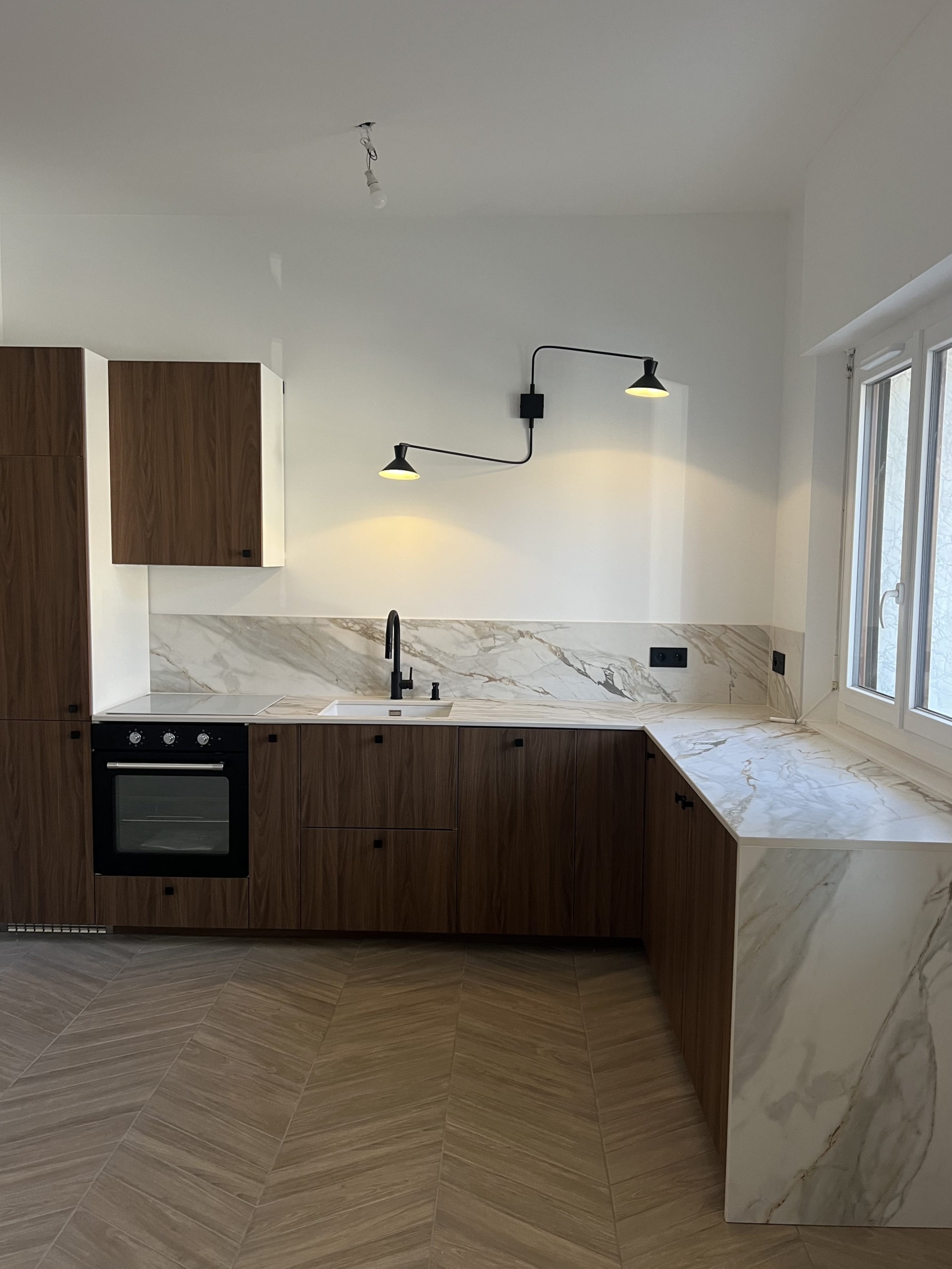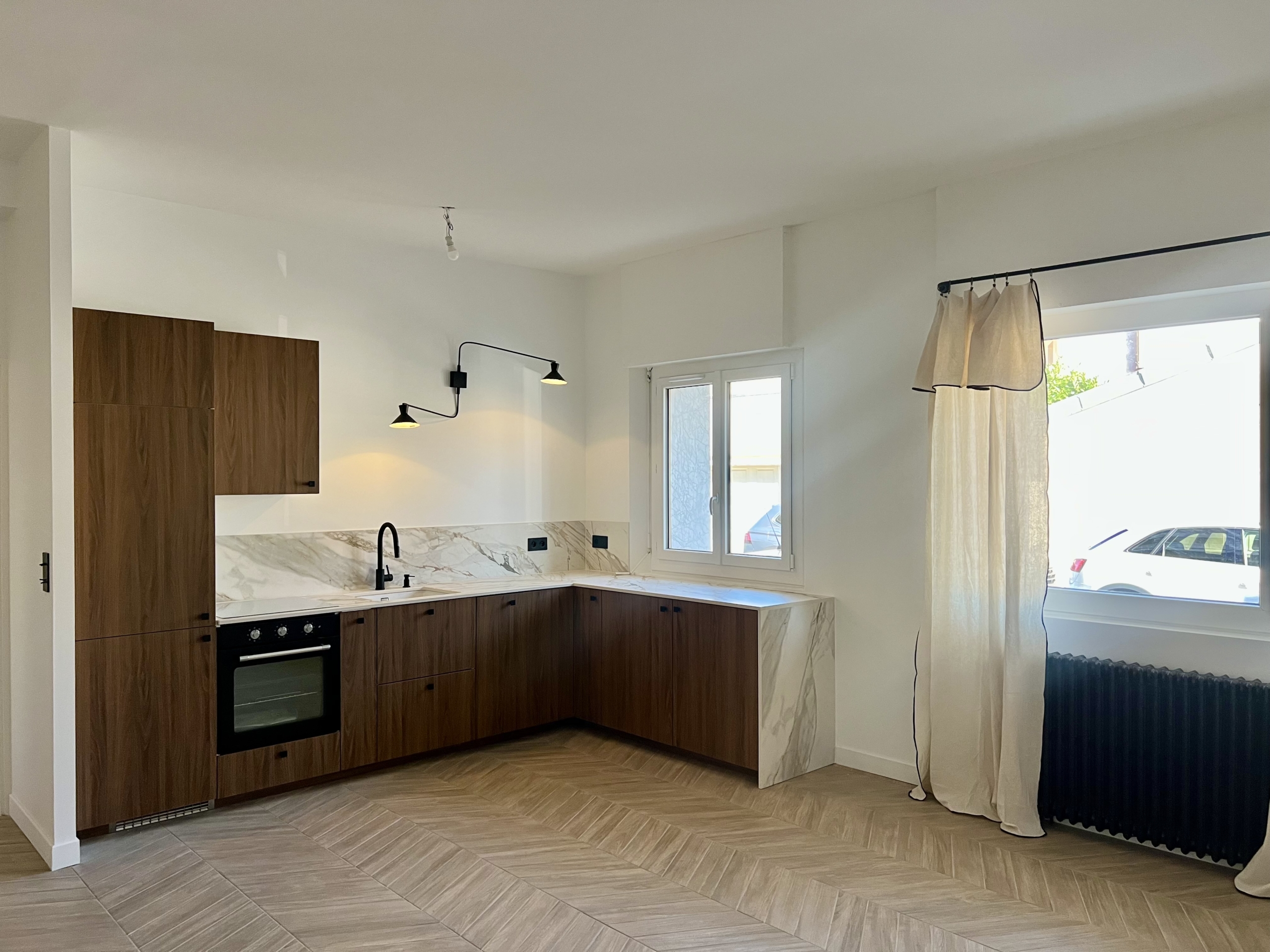Entièrement rénové avec goût, cet appartement offre des prestations de qualité : huisseries neuves, cuisine moderne entièrement équipée avec électroménager intégré, dont un lave-linge/sèche-linge discret et un élégant plan de travail en Laminam.