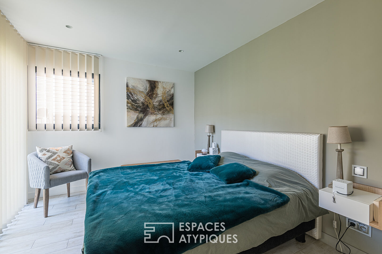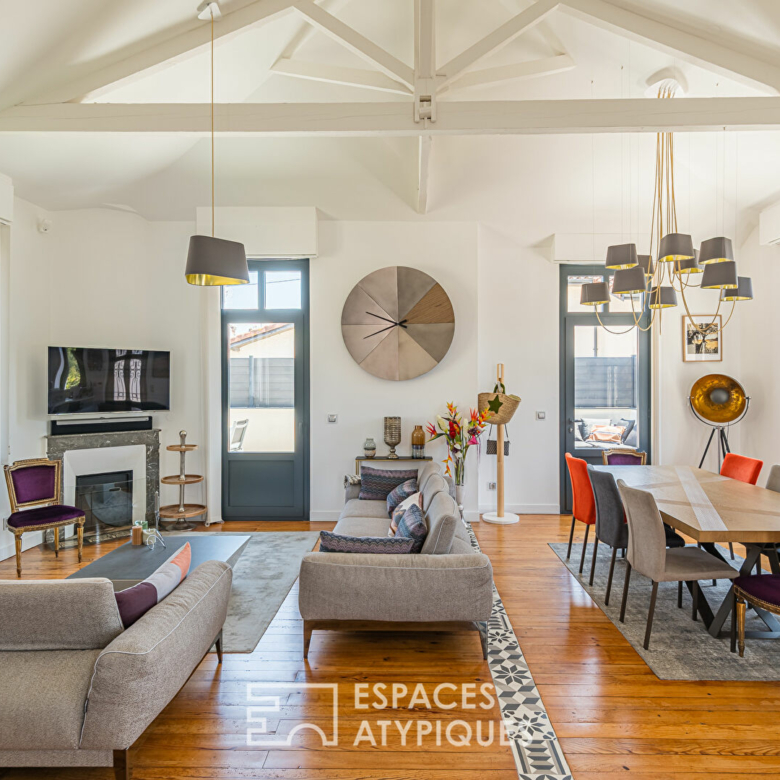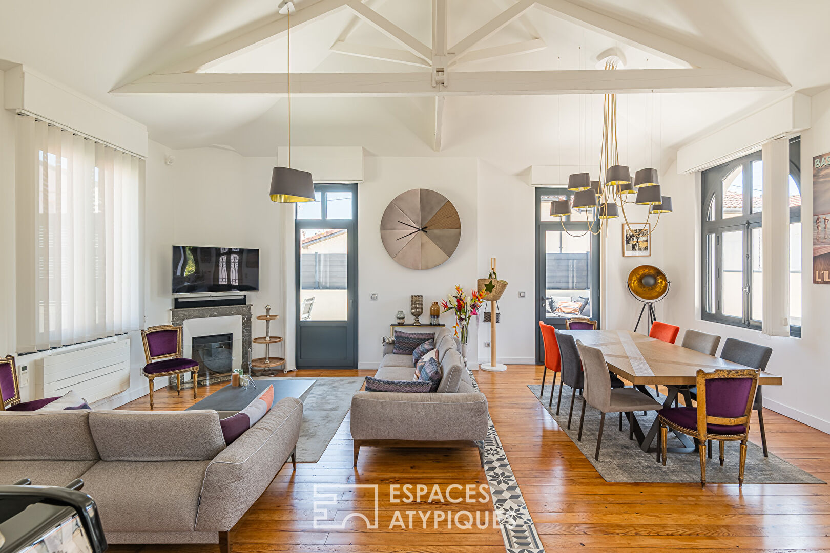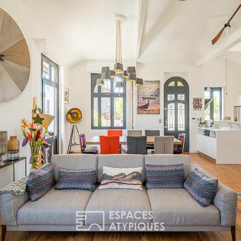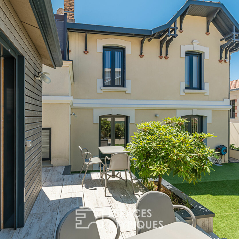 Située dans un quartier résidentiel paisible d’Arcachon, cette maison de charme des années 40 a fait l’objet d’une rénovation intégrale qui réinvente les codes de l’habitat familial avec finesse et modernité. Derrière sa façade aux lignes sobres et authentiques, cette maison développe près de 145 m² de surface habitable baignée de lumière, sur une parcelle de 320 m².
