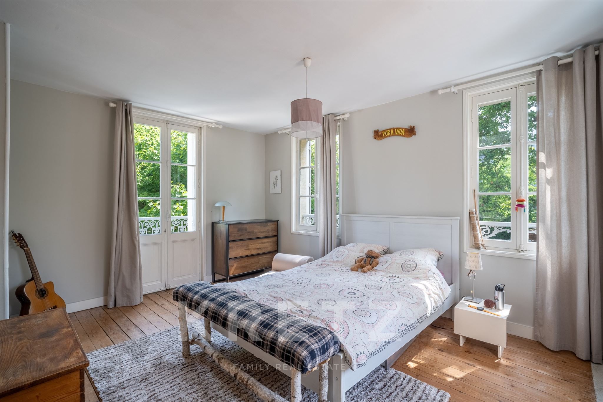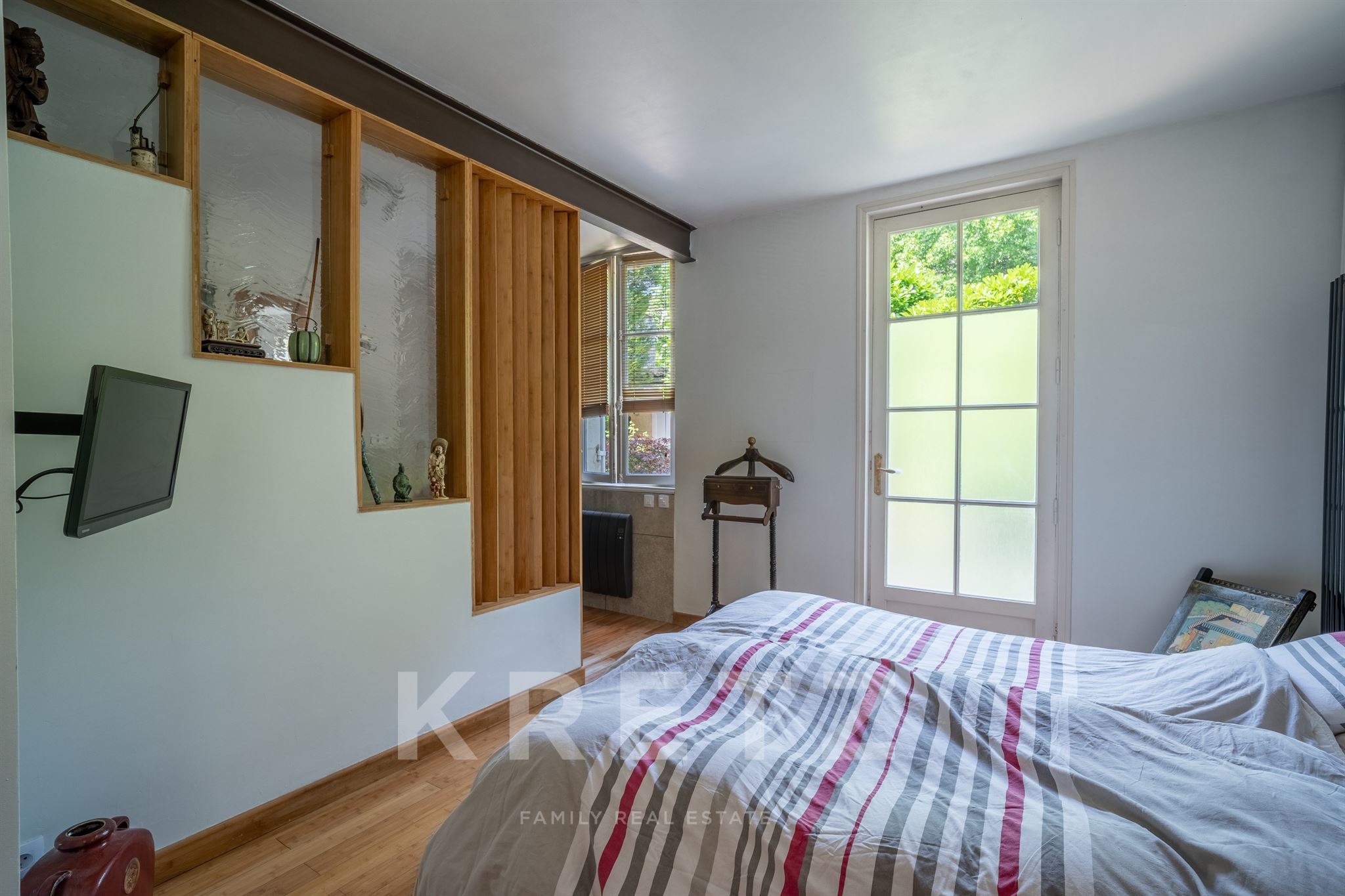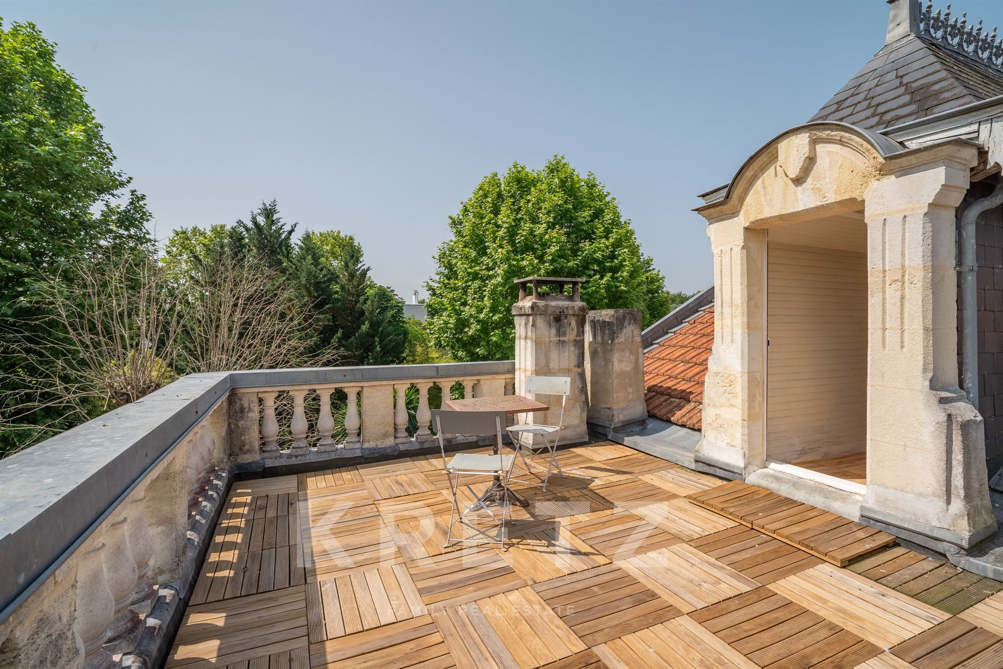 À l’étage, un palier dessert trois chambres et deux salles de bains, parfait pour une vie de famille. Le dernier niveau offre un espace mansardé qui peut devenir chambre d’appoint, salle de jeux ou espace ado, avec accès à deux toits-terrasses d’environ 25 m² chacun.