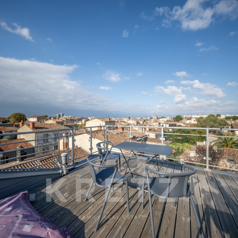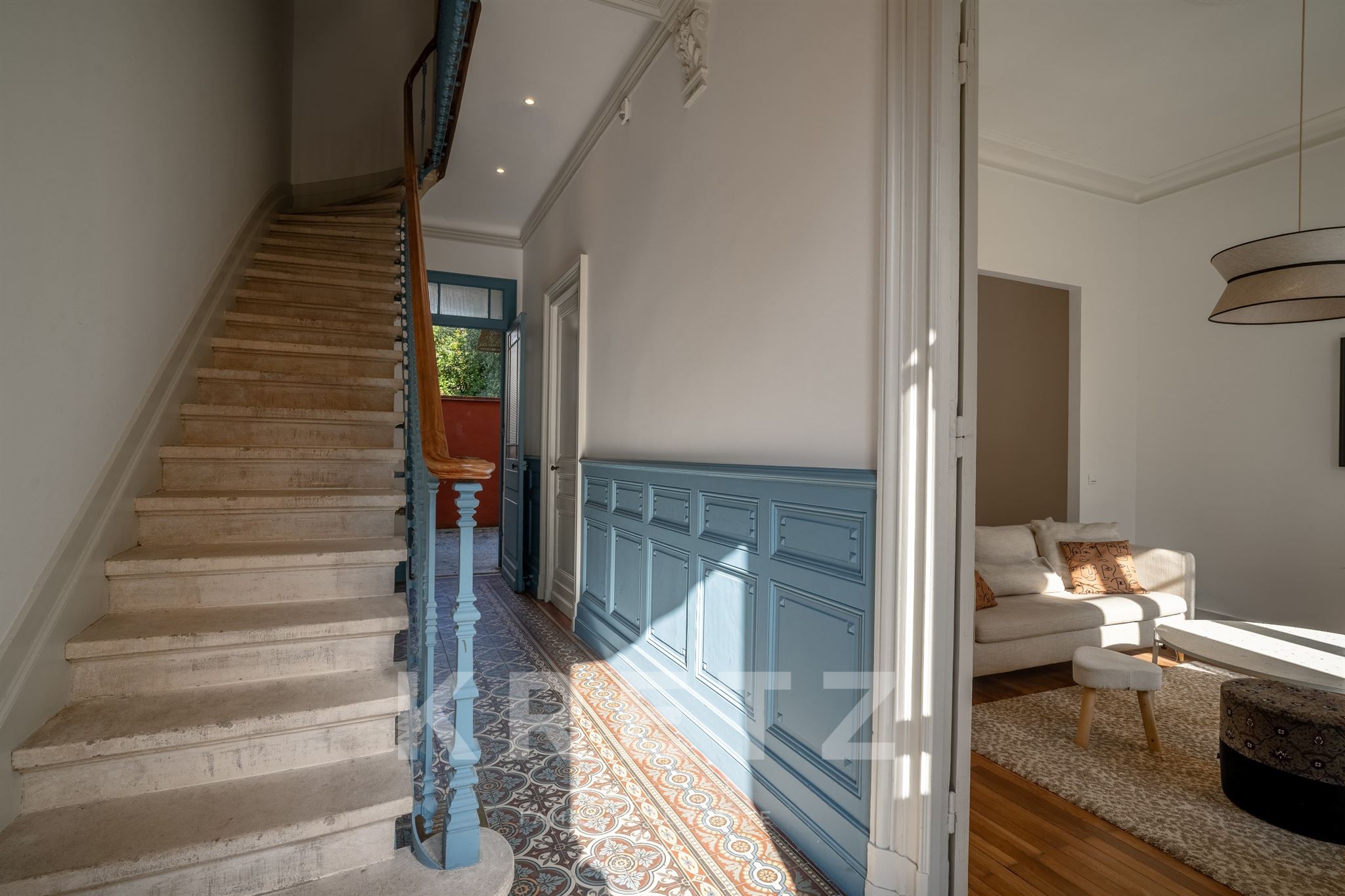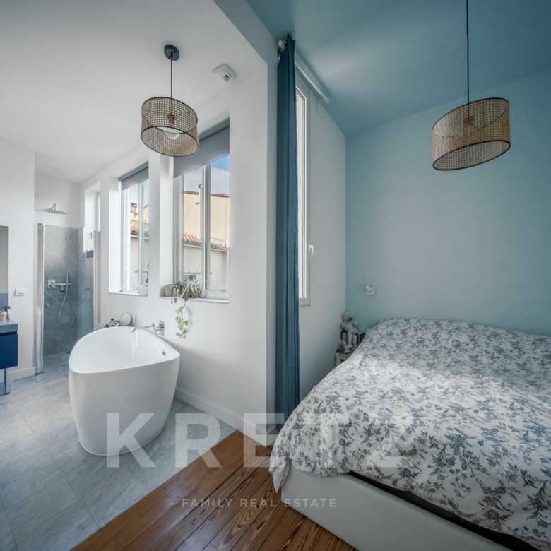 Bordeaux Fondaudège : Immeuble particulier avec un atout rare, un toit-terrasse plein sud, sans vis-à-vis, offrant une vue spectaculaire sur les clochers de Saint-Ferdinand et les arches du Palais Gallien. Un privilège rendu possible après plus de deux ans d’autorisations, pour un résultat à la hauteur des lieux : exceptionnel. Cet immeuble de près de 330 m², situé au cœur du quartier Fondaudège – Jardin Public, a été entièrement restauré avec un soin remarquable. Chaque niveau a été pensé pour conjuguer esthétique, confort et fonctionnalité : De spacieux espaces de vie invitent à la convivial, 7 suites parentales, chacune avec sa salle d’eau en marbre, offrent intimité et raffinement. Au sommet, un rooftop lumineux et sans vis-à-vis, suspendu au-dessus de Bordeaux, prolonge la maison vers le ciel. L’organisation actuelle permet une double lecture du lieu : celle d’une maison d’hôtes de charme ou d’un co-living haut de gamme, où chacun trouve son espace sans renoncer au partage. Une cour privative complète l’ensemble, apportant fraîcheur et sérénité au cœur d’un des secteurs les plus recherchés de la ville. Confidentiel, exclusif, irrésistiblement bordelais. Ce bien rare ne se visite pas, il se découvre !