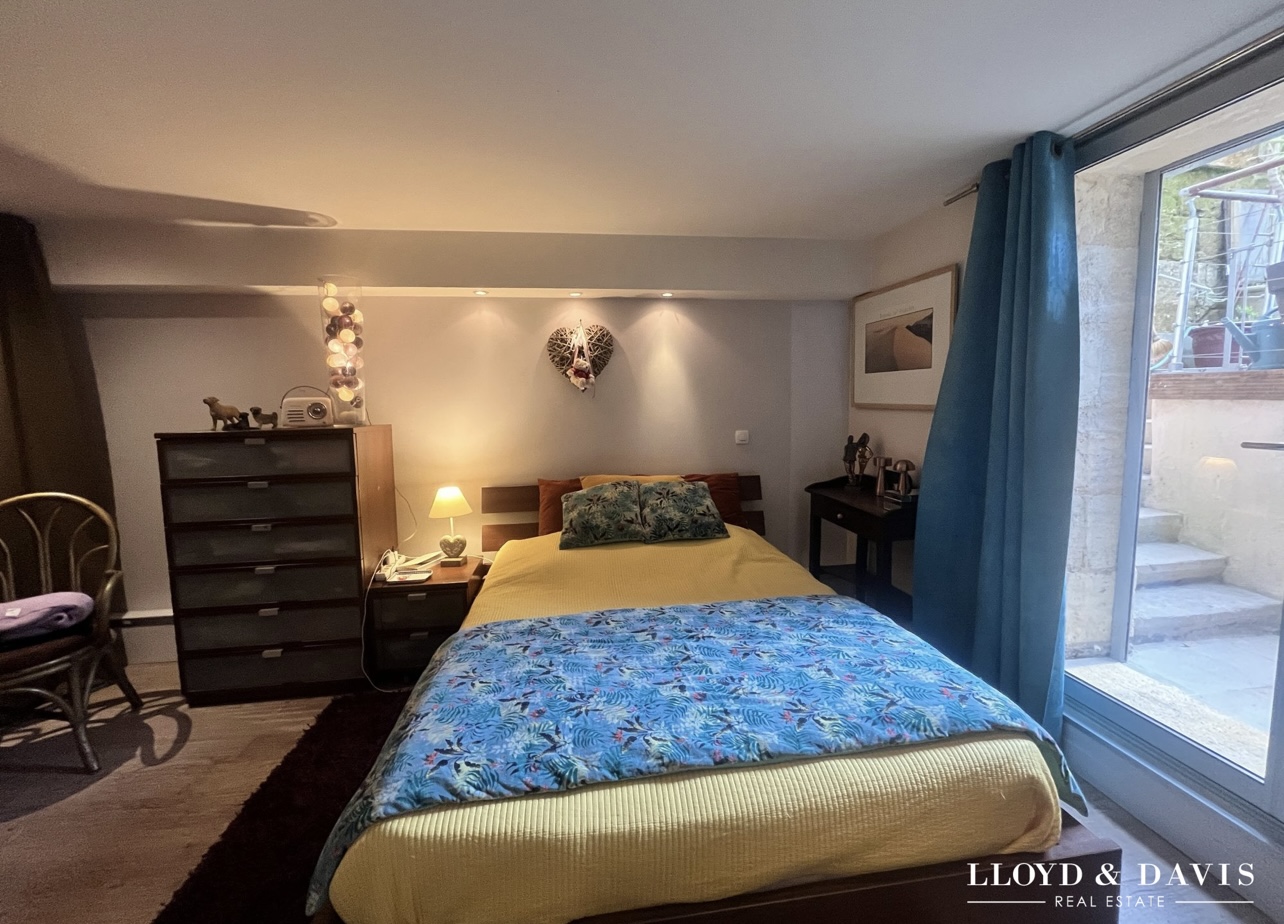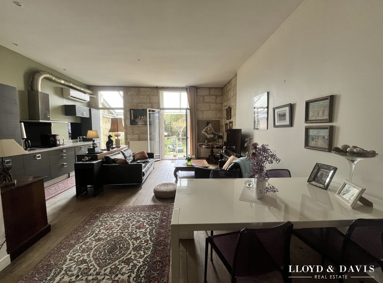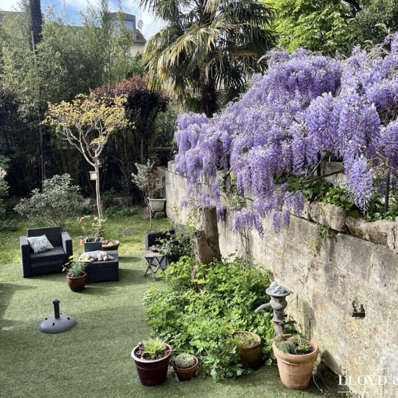 Au rez-de-chaussée d’un élégant immeuble en pierre récemment ravalé, découvrez une superbe pièce de vie avec cuisine intégrée, entièrement tournée vers le jardin. De larges baies vitrées prolongent naturellement l’espace vers une terrasse qui descend, en quelques marches, vers un jardin luxuriant d’environ 100 m² exposé Ouest, à l’abri des regards.