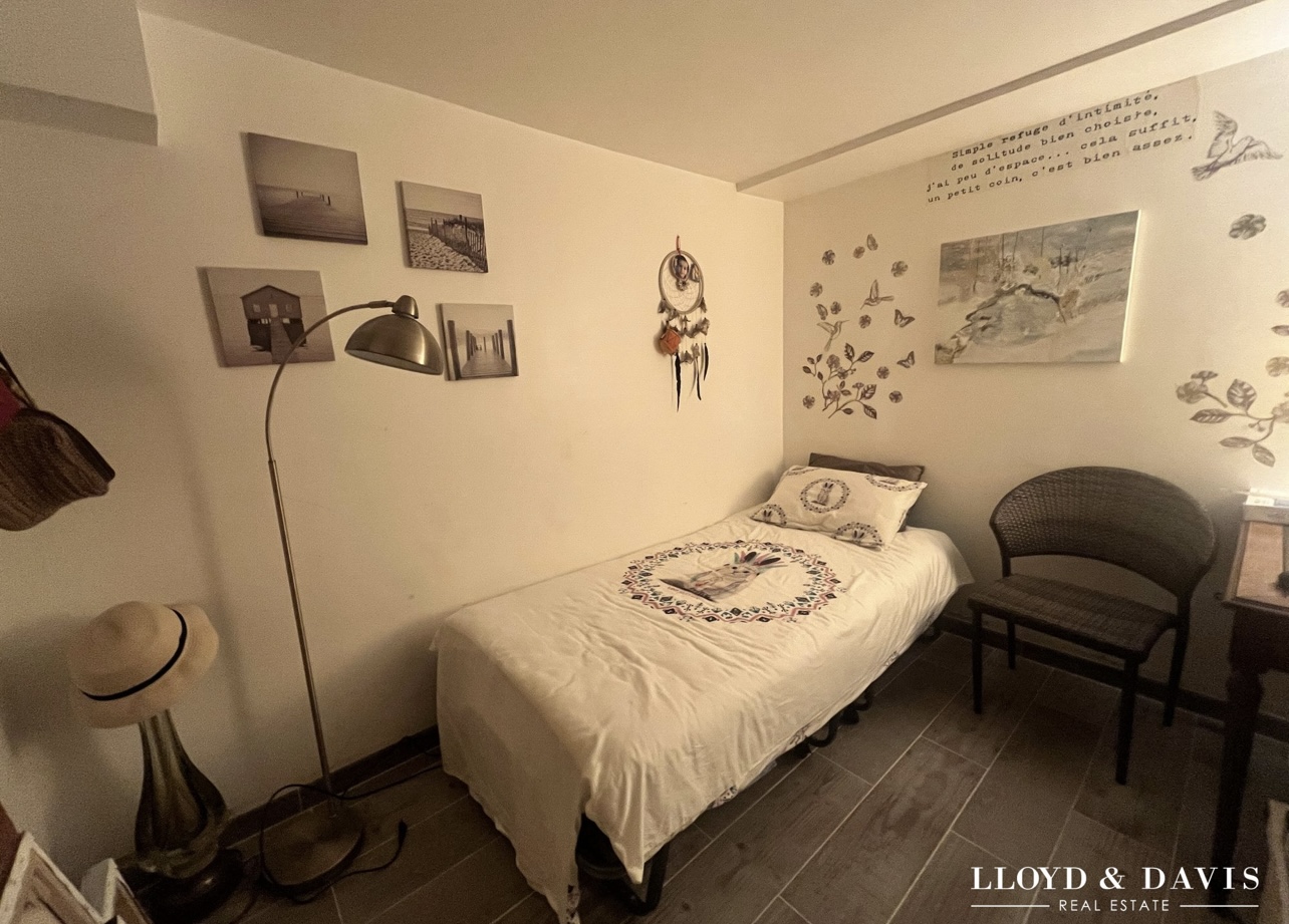 En rez-de-jardin, vous trouverez une grande chambre avec salle de bains et dressing ainsi qu’une pièce supplémentaire idéale en chambre d’appoint ou bureau pour le télétravail.