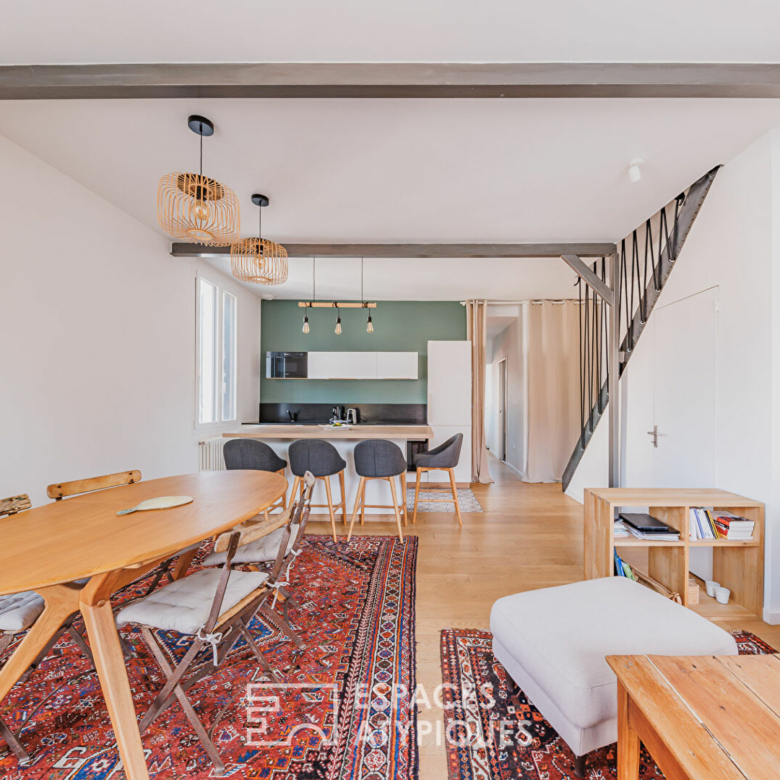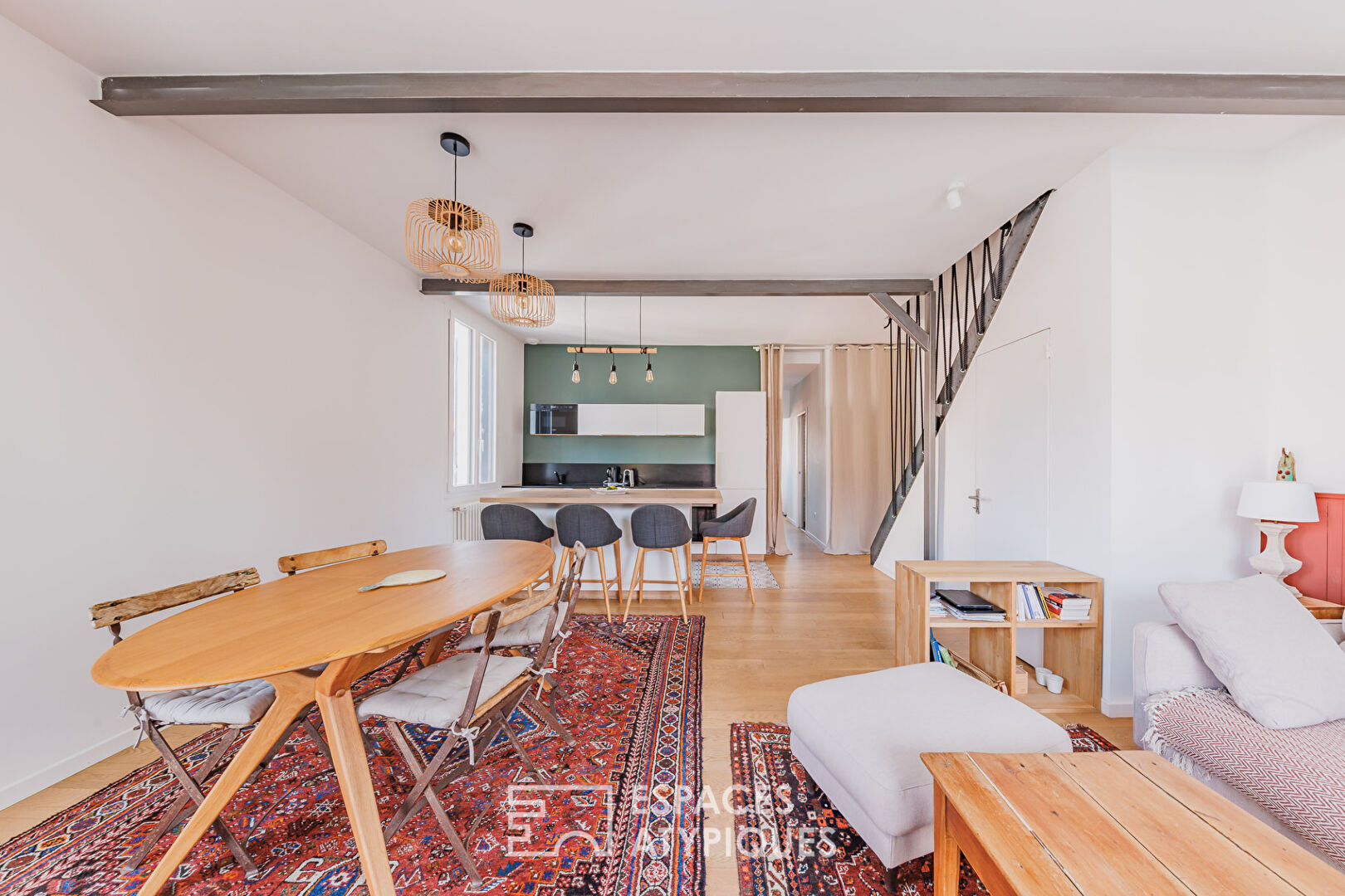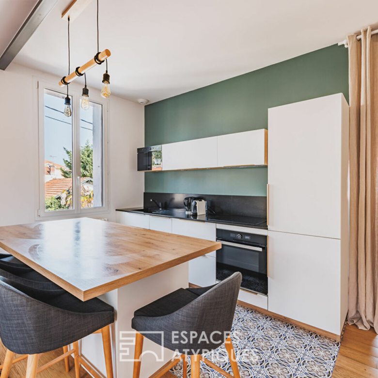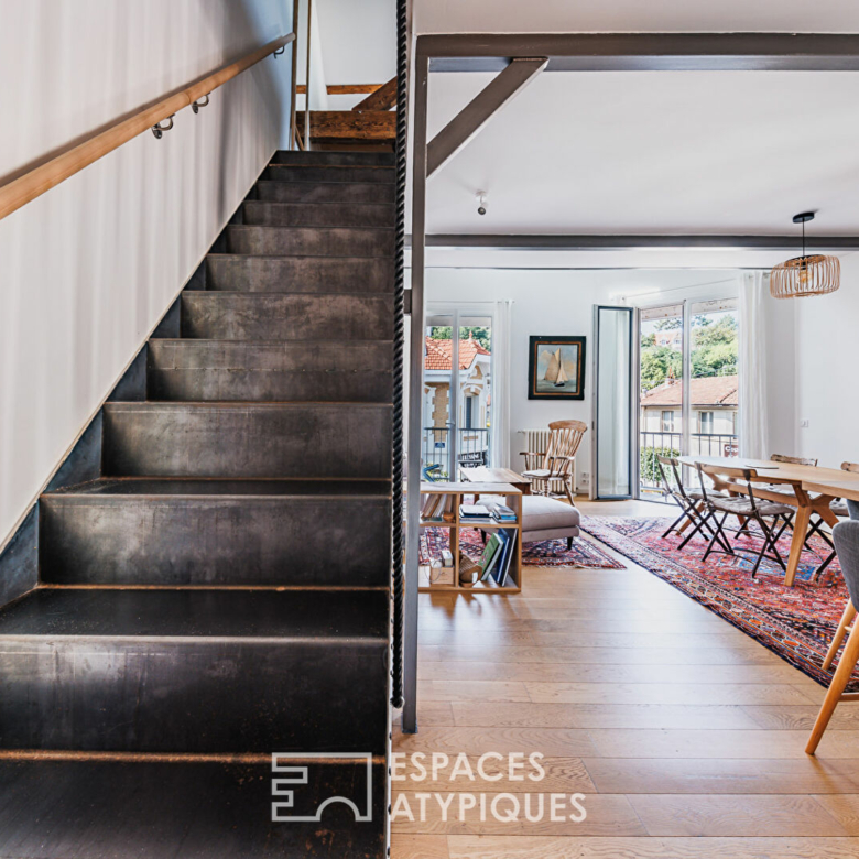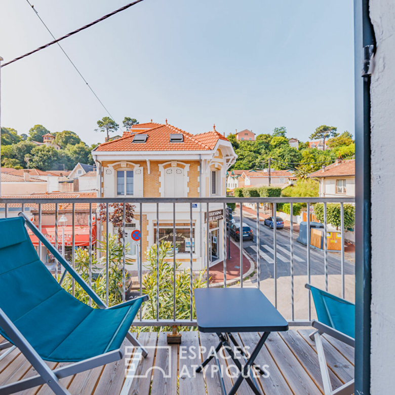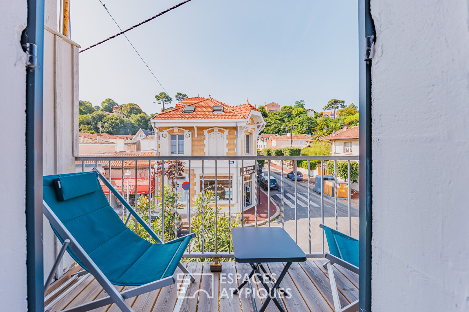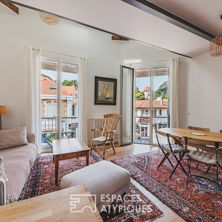 Situé en plein centre d’Arcachon, au dernier étage d’une charmante copropriété à taille humaine, cet appartement en duplex de 63 m² Carrez, 76m2 au sol, offre un cadre de vie aussi élégant que lumineux.