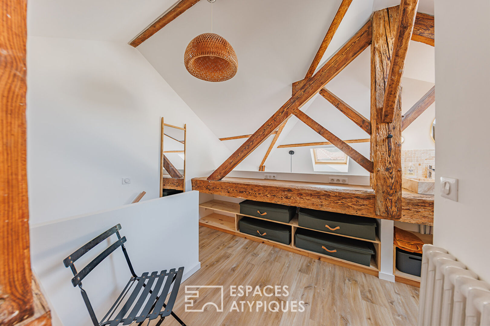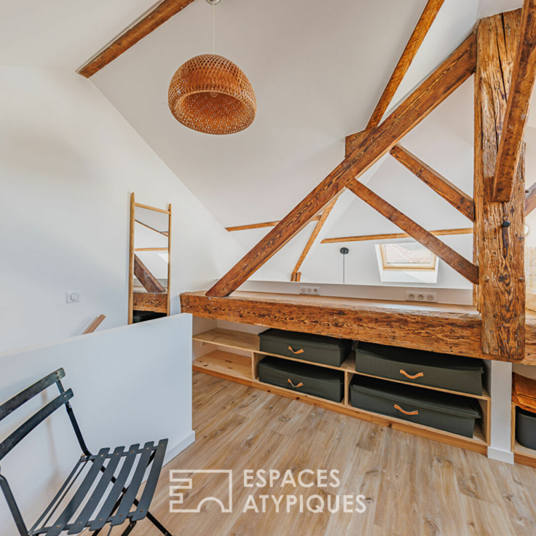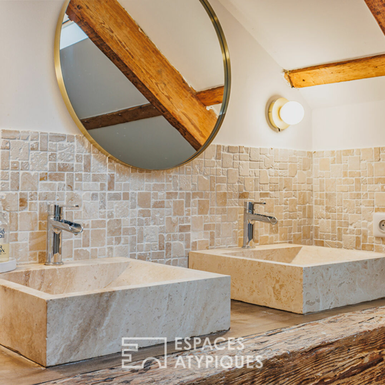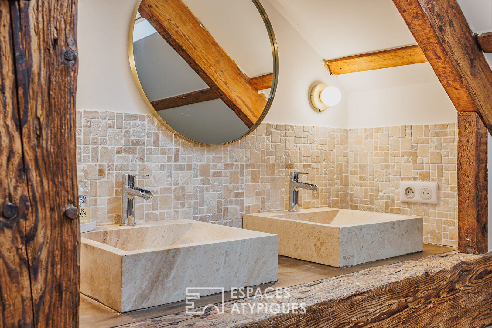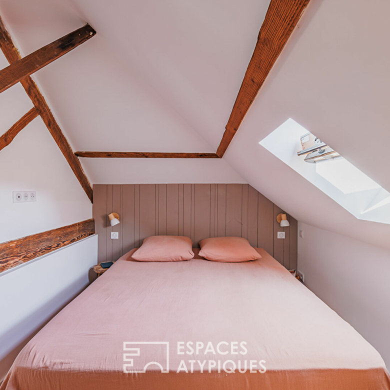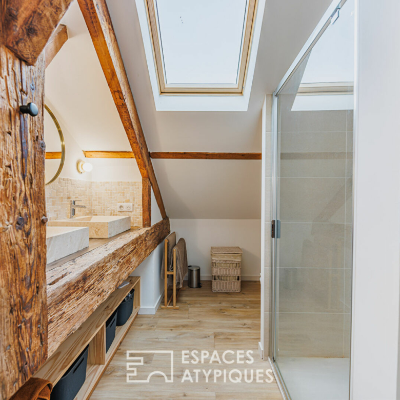 À l’étage, une seconde chambre chaleureuse, une salle d’eau contemporaine avec WC et une circulation fluide offrent un confort optimal pour un quotidien doux et raffiné.