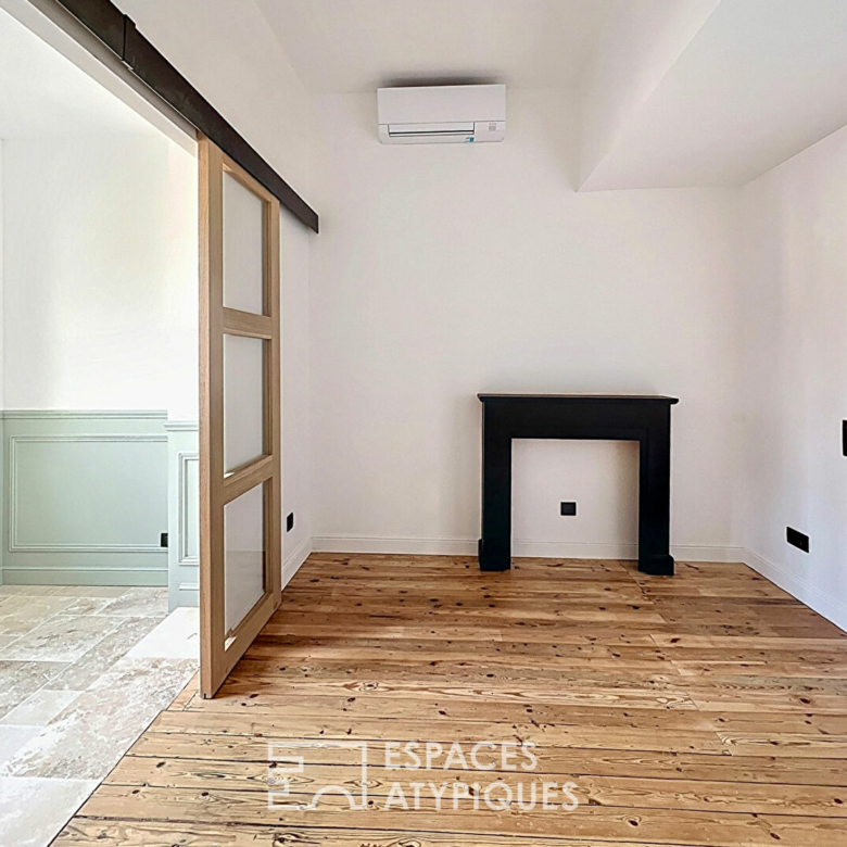 Les matériaux ont été soigneusement sélectionnés pour offrir confort et caractère : parquet massif, menuiseries qualitatives, moulures décoratives, climatisation et éléments décoratifs atypiques.