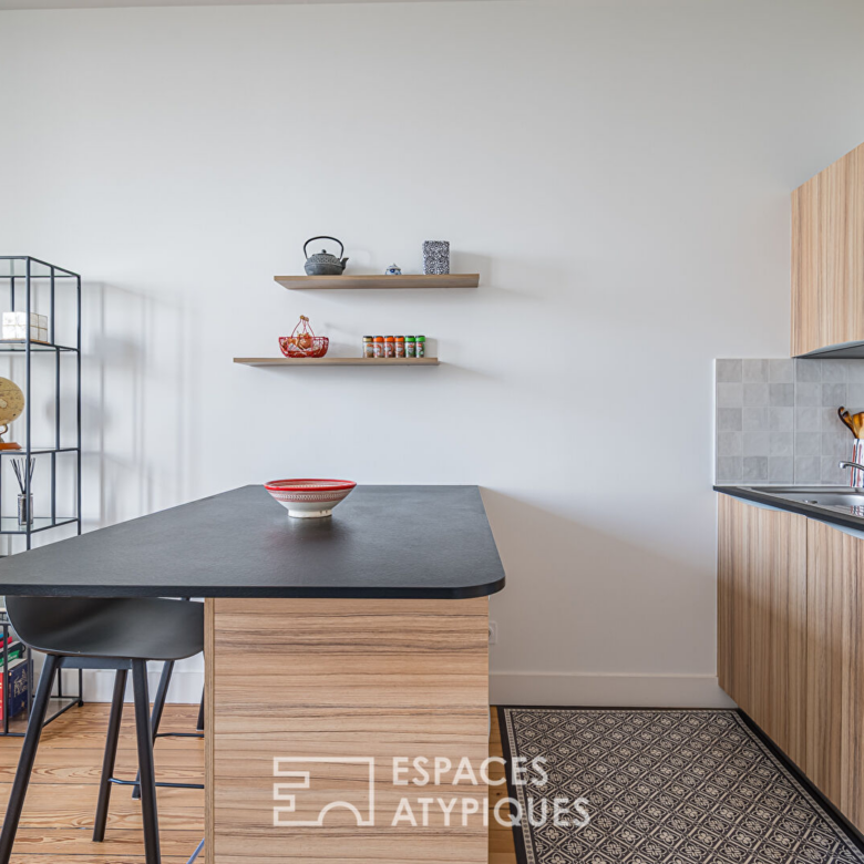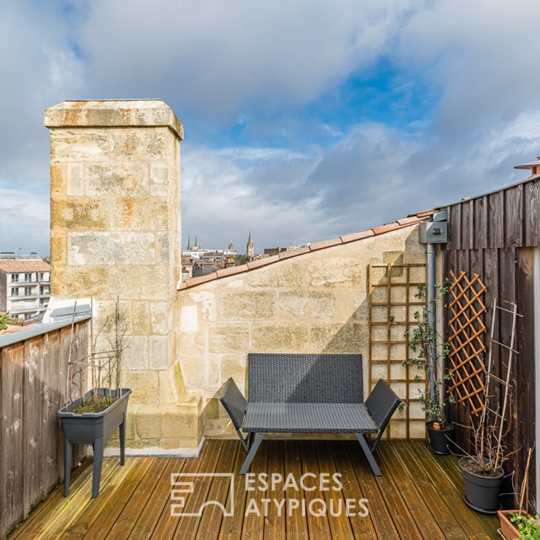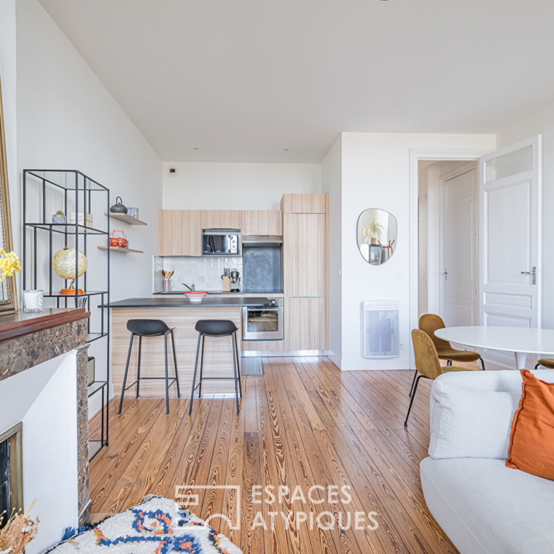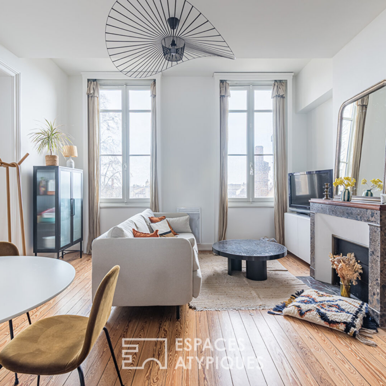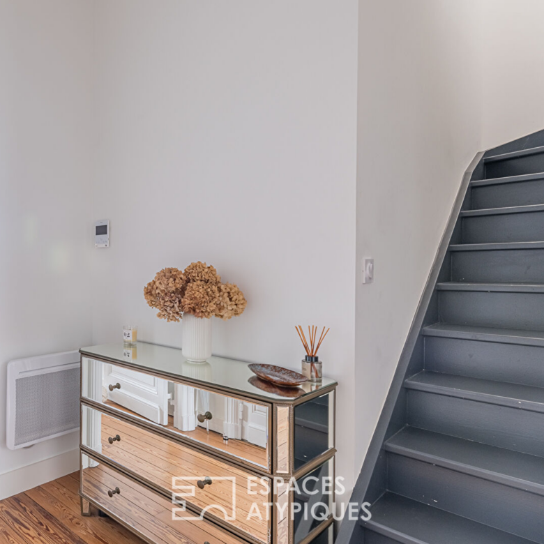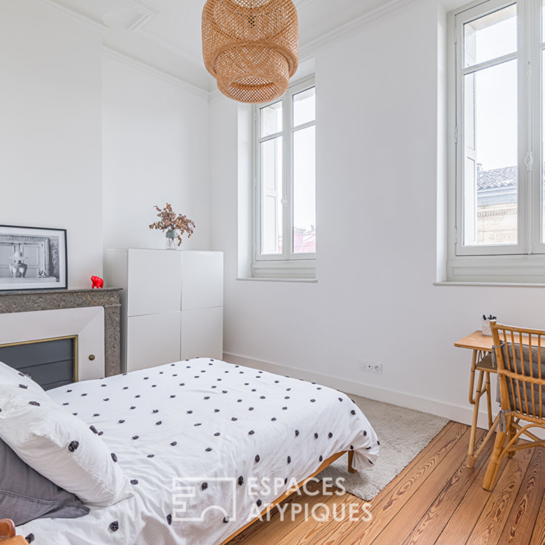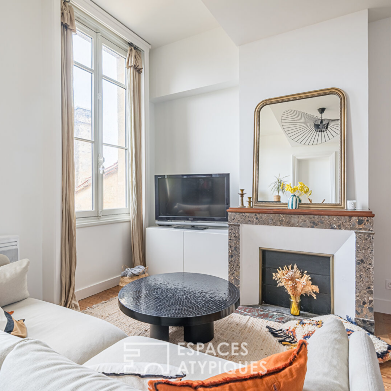 Dans le quartier recherché de Saint-Genès, à proximité immédiate du centre, cet élégant duplex occupe le deuxième et dernier étage d’un bel immeuble en pierre, au sein d’une petite copropriété. Entièrement rénové en 2021 et bénéficiant encore des garanties décennales, il conjugue prestations anciennes et matériaux contemporains soigneusement sélectionnés.
