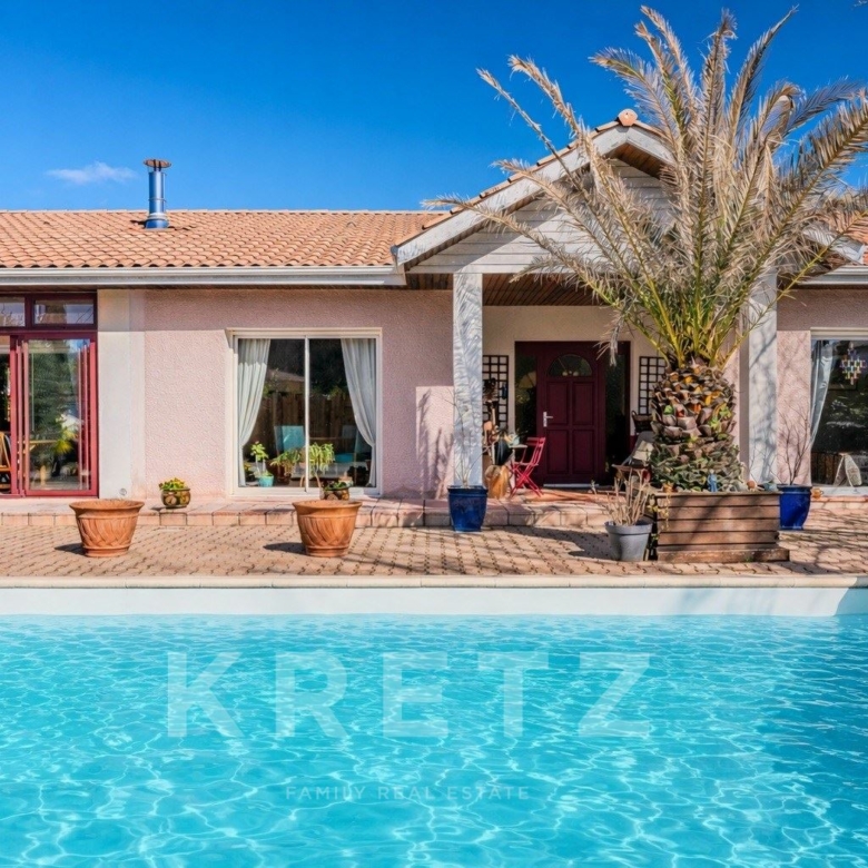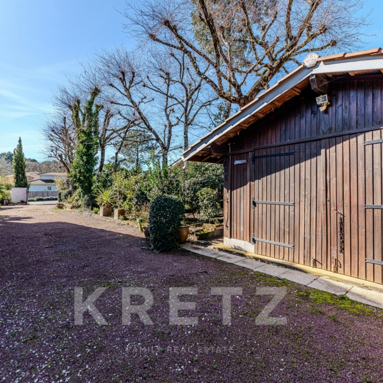 Exclusivité : La Teste-de-Buch, dans le secteur résidentiel des Miquelots, à proximité immédiate des commodités et à quelques minutes de l’essentiel du Bassin : Arcachon, la Dune du Pilat, ainsi que le Port de La Teste et ses cabanes ostréicoles. Derrière ses lignes familiales, cette maison d’environ 150 m², implantée sur un terrain généreux d’environ 1100m², offre une base saine et équilibrée, avec une belle opportunité de mise au goût du jour pour la façonner à votre image, sans rénovation lourde. Elle se compose d’une entrée avec rangements, d’une cuisine ouverte tout en restant bien distincte avec un cellier, et d’un séjour avec cheminée. Vous disposerez de 4 chambres, dont une suite parentale (dressing et salle d’eau privative), ainsi que d’une grande salle de bain avec douche. La lumière s’invite naturellement dans la véranda exposée Sud, pensée comme un prolongement de la vie intérieure. À l’extérieur, le jardin arboré et paysagé, les terrasses et la piscine installent immédiatement une atmosphère estivale et conviviale. Un garage indépendant en bois complète l’ensemble. À visiter sans tarder !