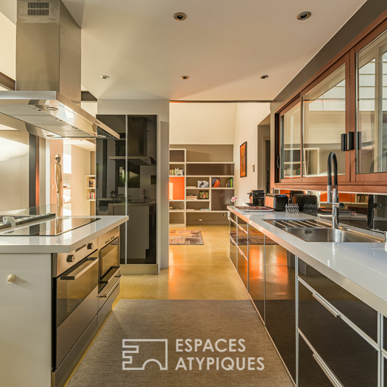 Le loft circule autour d’un patio à ciel ouvert, ce qui offre une sublime luminosité dans l’ensemble du bien, entièrement vitré.