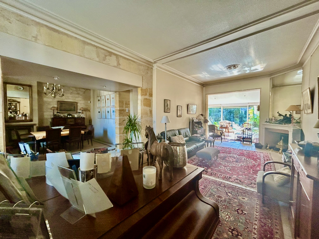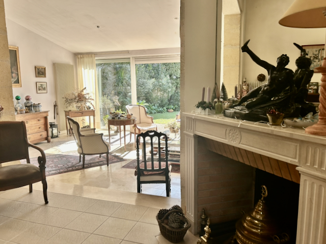 D’une superficie de 190 m² Carrez (237 m² habitables), la maison offre des volumes généreux. Dès l’entrée, vous découvrez un immense double séjour, sublimé par la suppression des cloisons d’origine, créant ainsi un bel espace de réception, baigné de lumière grâce à son exposition sud/ouest. Les larges ouvertures tournées vers le jardin rendent la luminosité omniprésente tout au long de la journée. La pierre structure les différents espaces – salon et salle à manger – tout en conservant une belle fluidité de circulation. Elle rappelle l’histoire et l’âme des maisons traditionnelles bordelaises, conférant à l’ensemble une atmosphère raffinée.