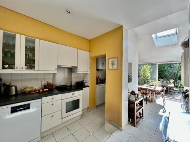 Entièrement orientée vers l’extérieur, la maison s’ouvre sur un magnifique jardin arboré de 200 m² plein sud/est, sans aucun vis-à-vis, véritable havre de paix en plein cœur de la ville. La cuisine bénéficie d’un accès direct au jardin, idéal pour les repas en terrasse et les moments de convivialité.