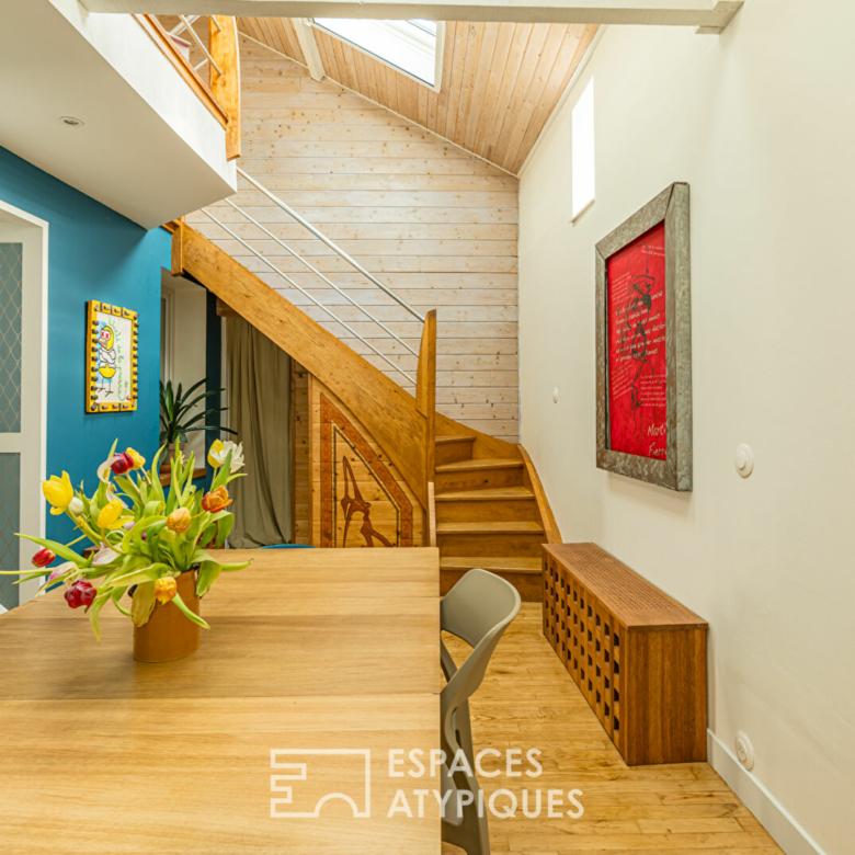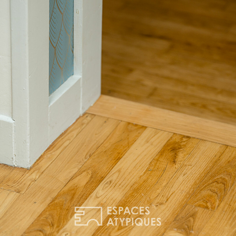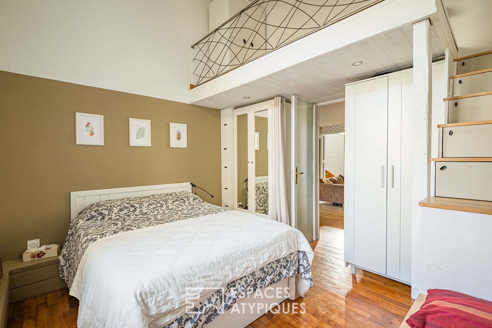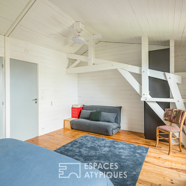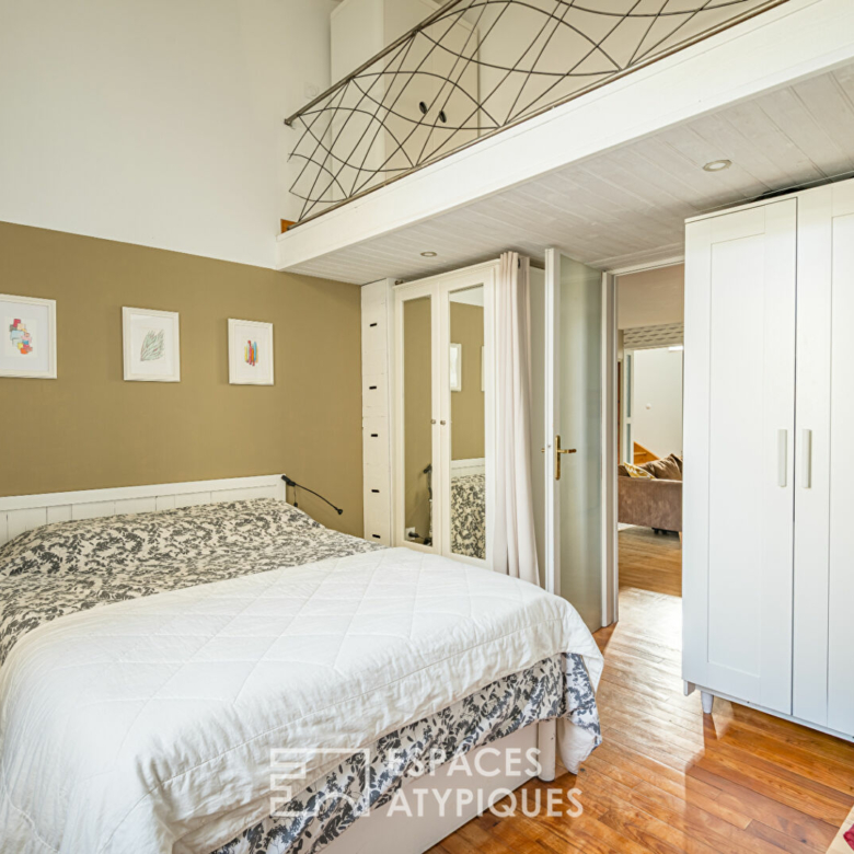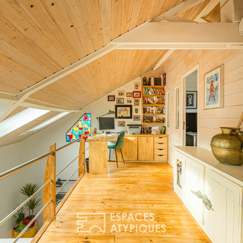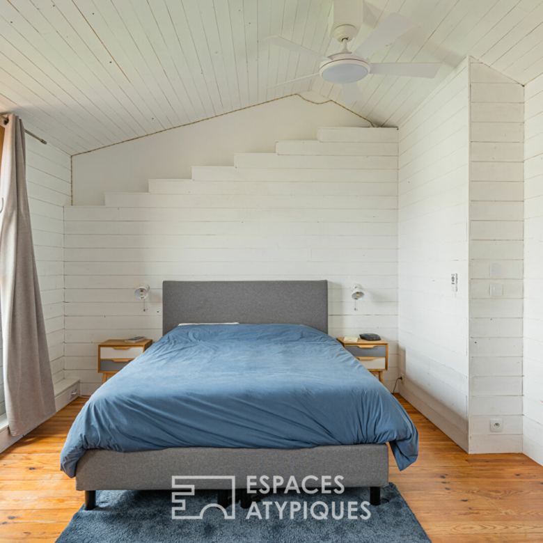L’étage distribue deux chambres confortables avec la possibilité d’en faire une troisième, complétées par une mezzanine indépendant avec un coin bureau et un wc pouvant être aménagé en salle d’eau à l’étage. Les volumes optimisés et la luminosité créent un espace nuit élégant, pensé pour le bien-être.