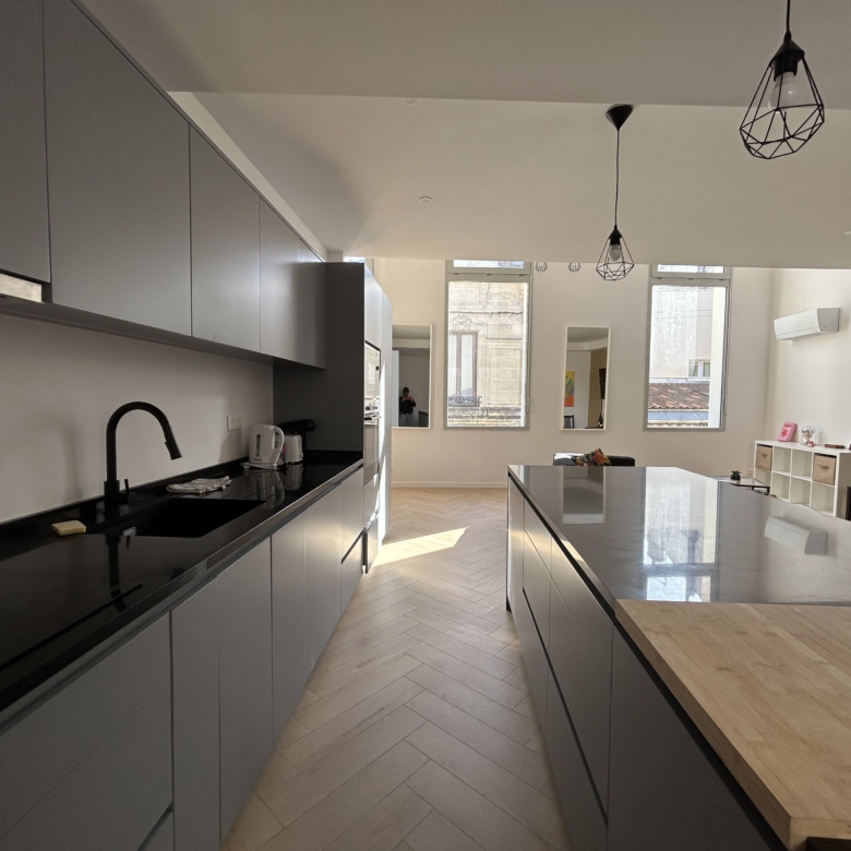 Charmante maison d’environ 120 m² idéalement située place Saint-Martial au cœur du très recherché quartier des Chartrons entièrement rénovée avec des matériaux de qualité et bénéficiant de la garantie décennale