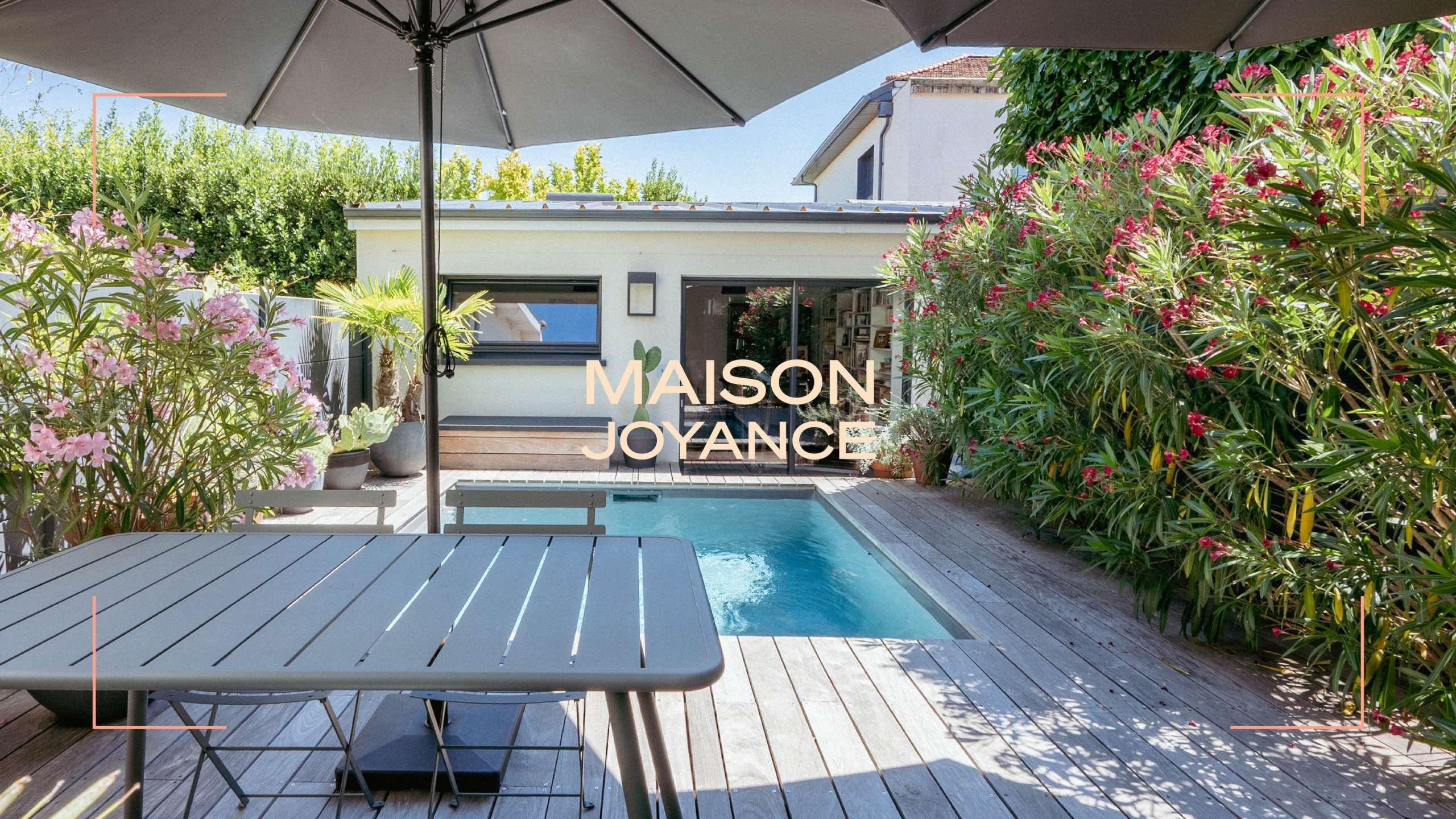 La pièce de vie s’ouvre largement sur l’extérieur, prolongeant les espaces vers une terrasse paysagée avec piscine, pour une vraie continuité dedans-dehors. La cuisine, aux lignes sobres et aux matériaux soigneusement choisis, accompagnera de jolis moments de vie.