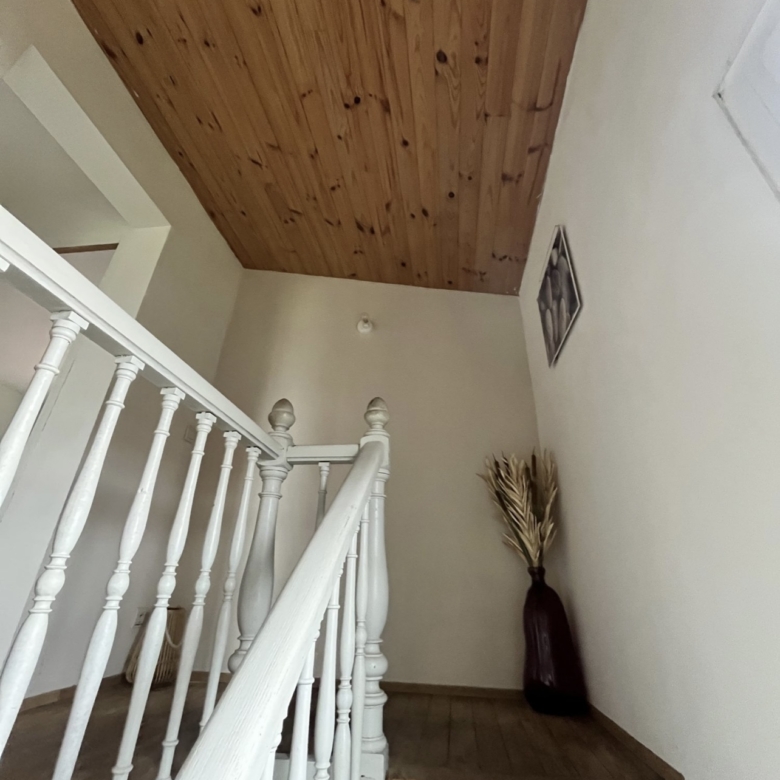 Ce niveau dispose également d’une chambre avec placards et d’une salle d’eau avec WC, permettant une vie de plain-pied.