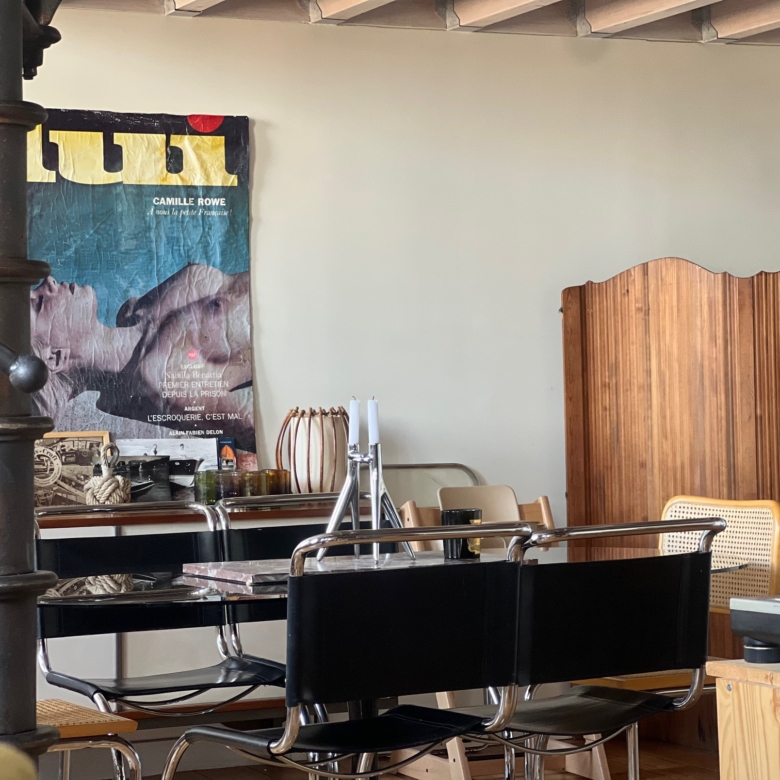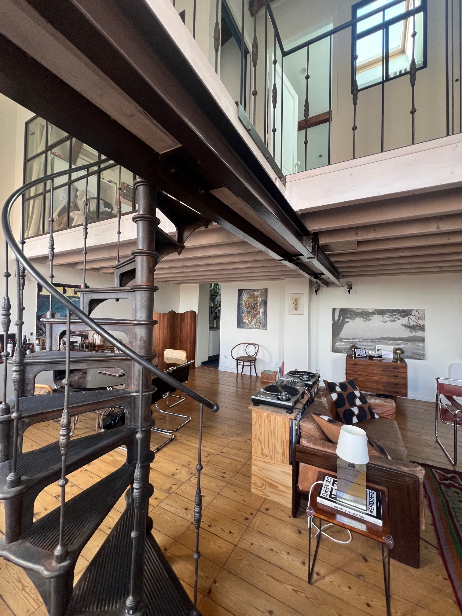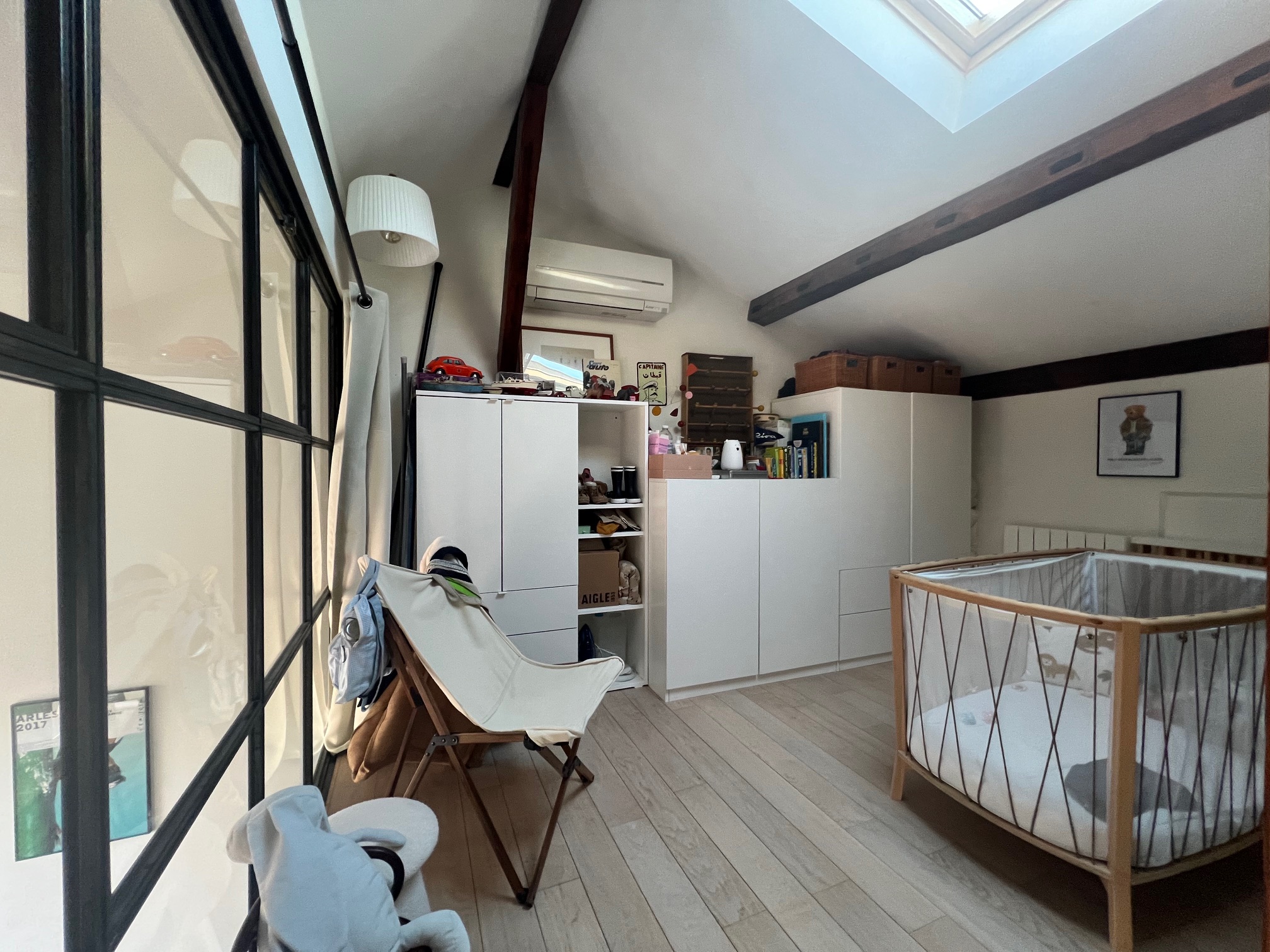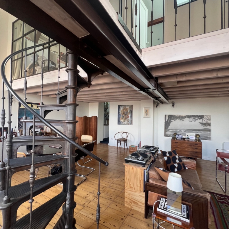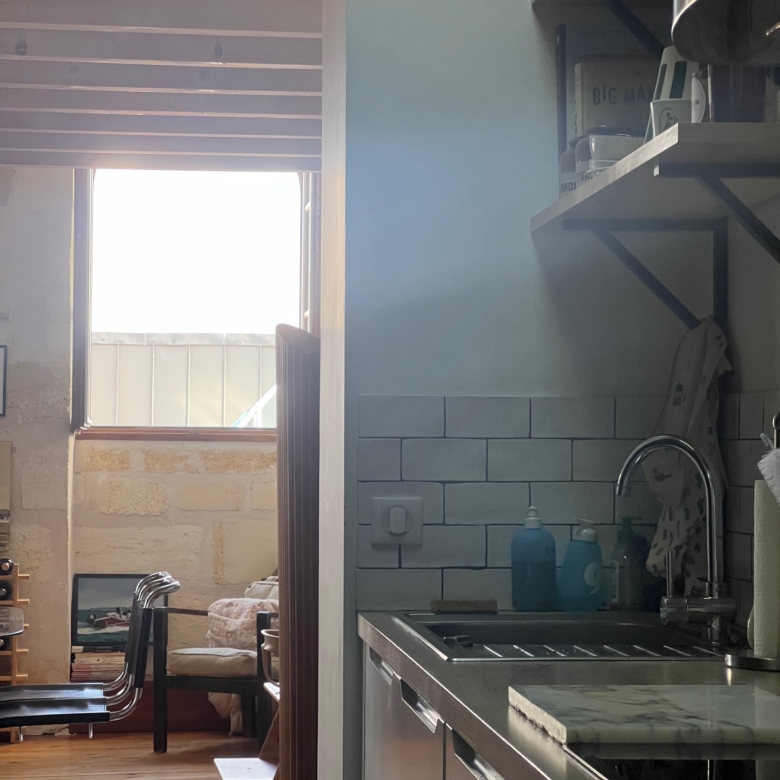 Nichée au 3éme et dernier étage d’un élégant immeuble en pierre, la vaste pièce de vie est baignée de lumière grâce à ses quatre grandes fenêtres et offre un cadre chaleureux et convivial.