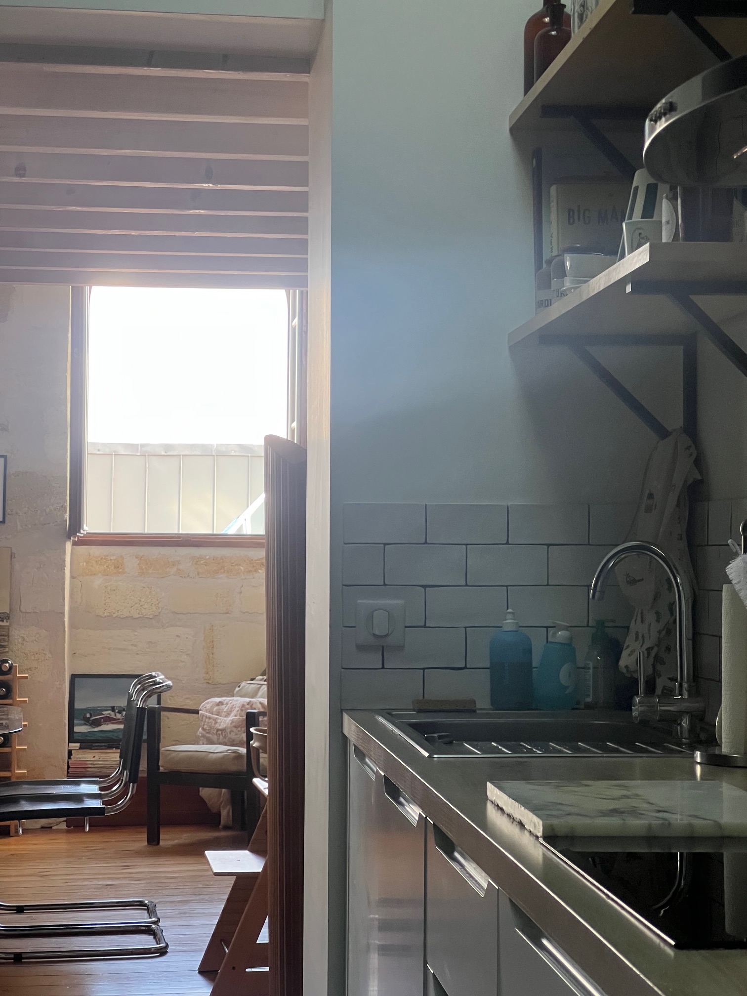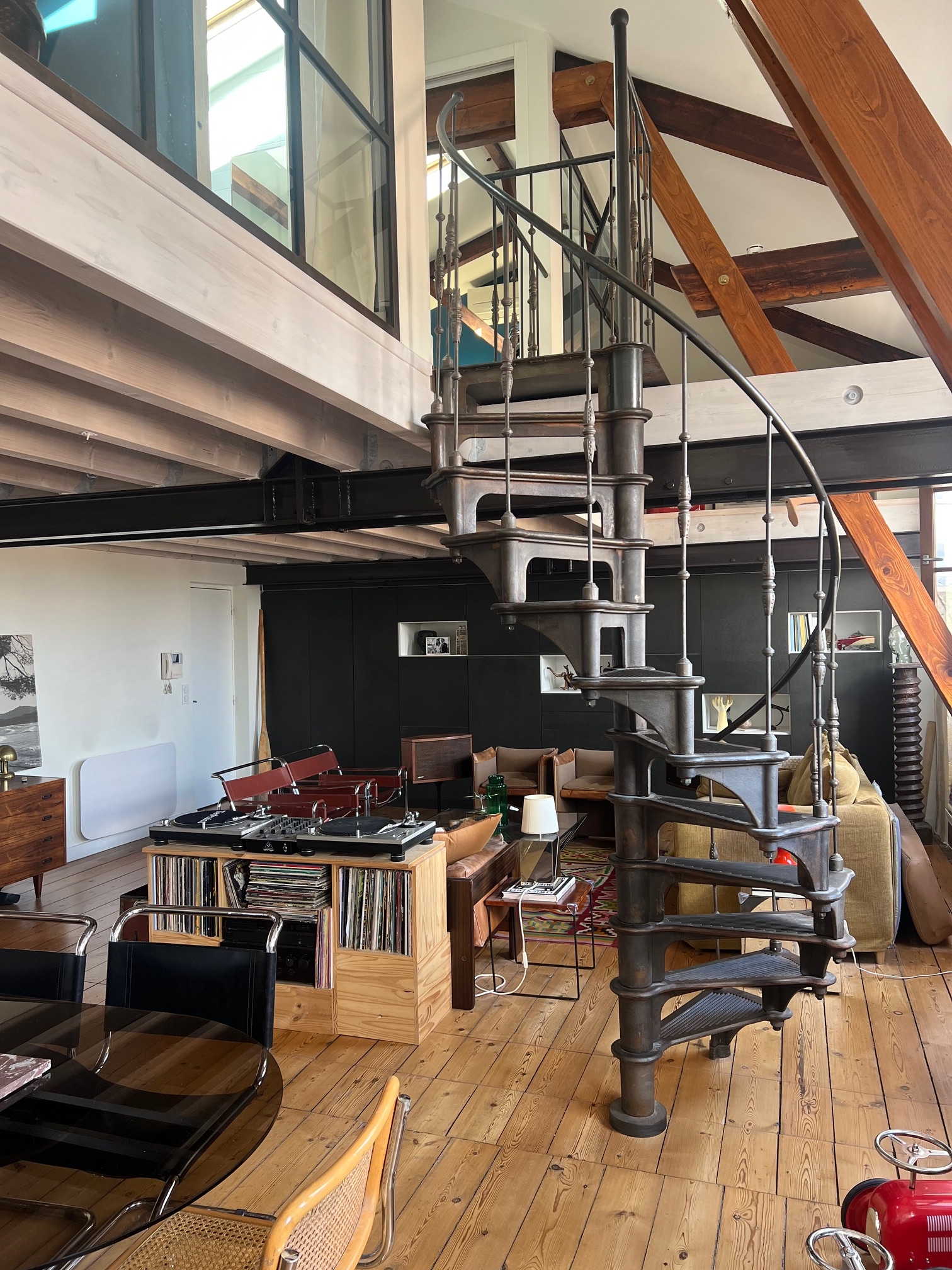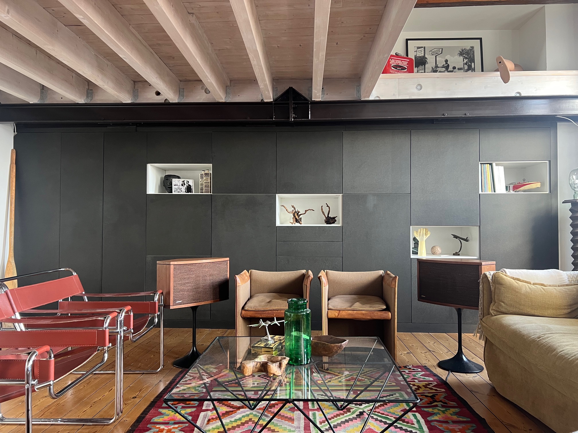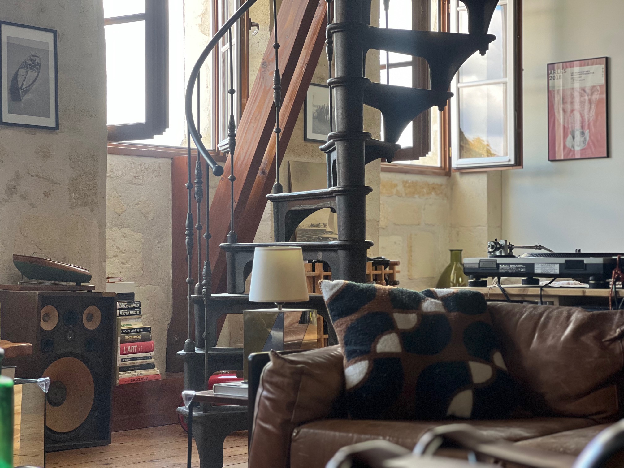 Nichée au 3éme et dernier étage d’un élégant immeuble en pierre, la vaste pièce de vie est baignée de lumière grâce à ses quatre grandes fenêtres et offre un cadre chaleureux et convivial.