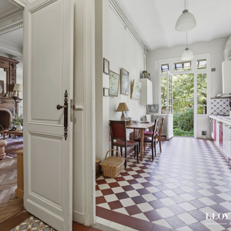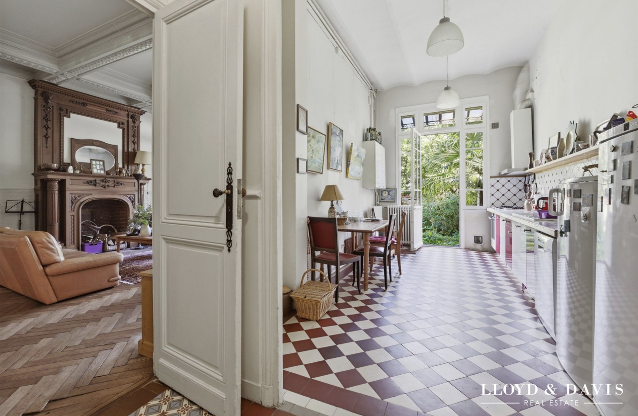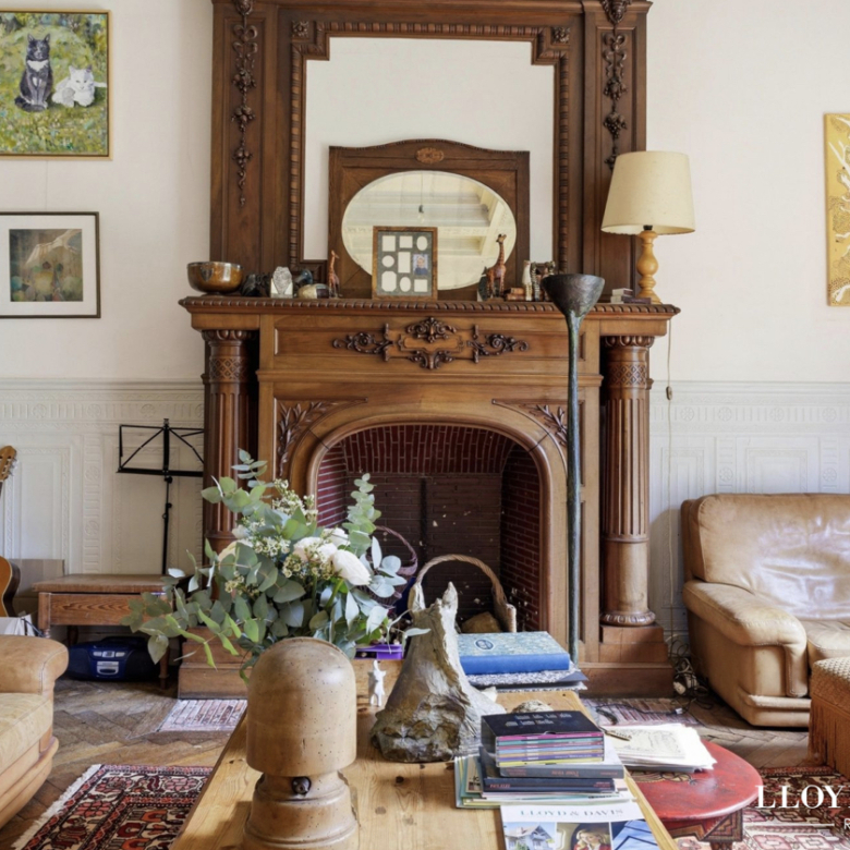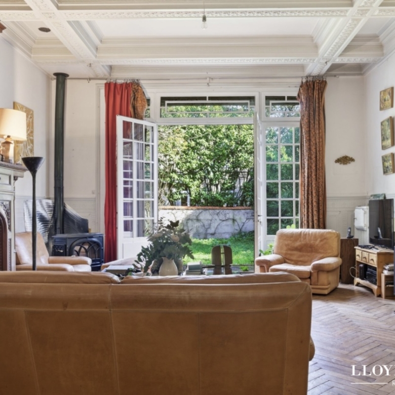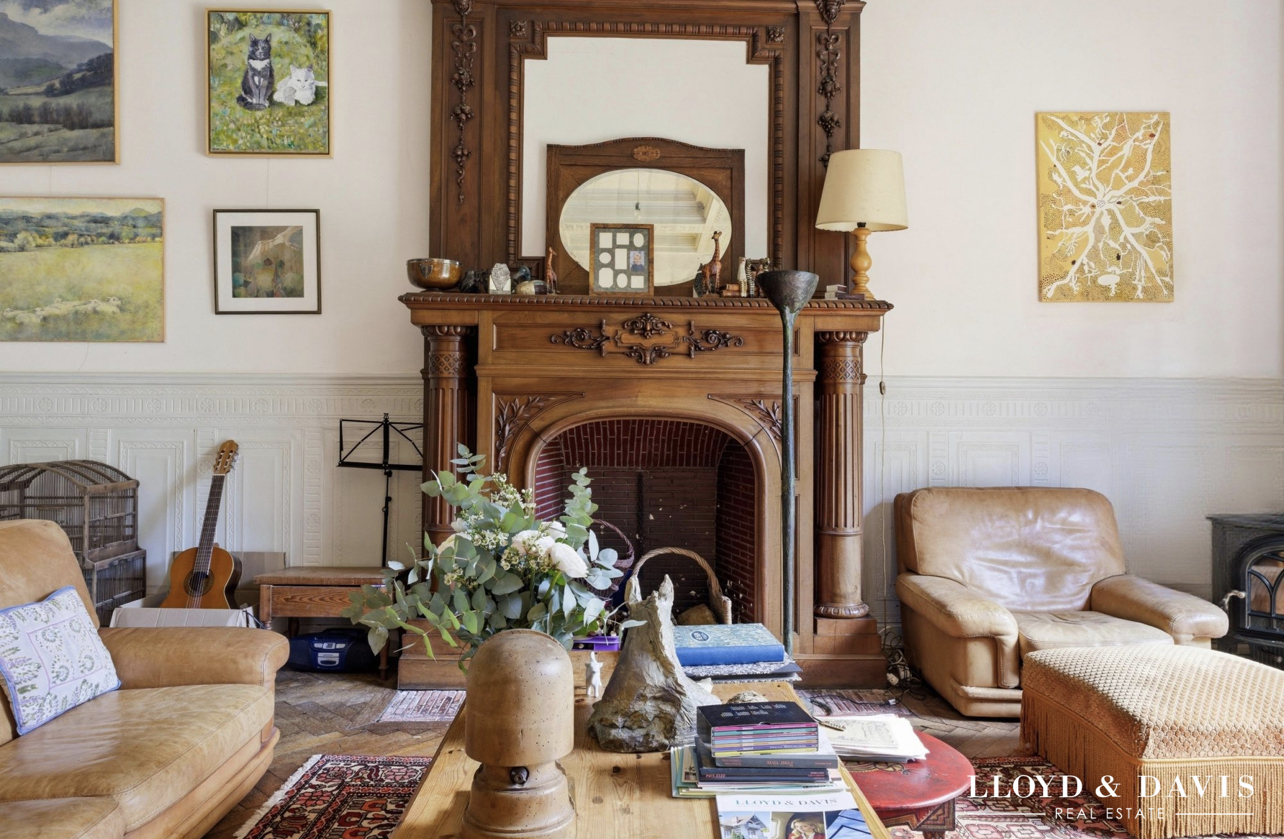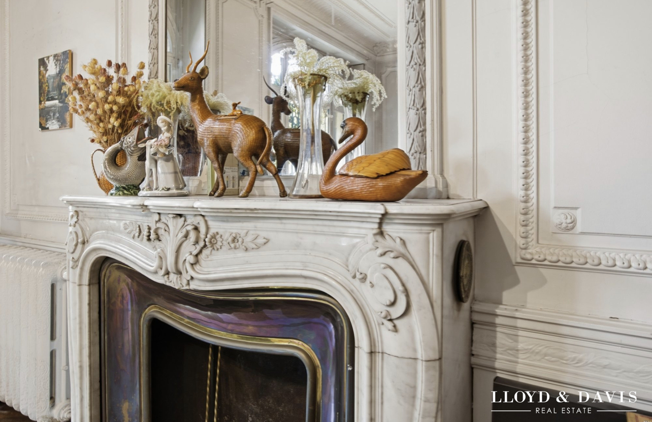 Cheminées, parquet massif, vitraux, hauteur sous plafond et moulures exceptionnelles s’apprécient à leur juste valeur dans cette maison hors du temps.