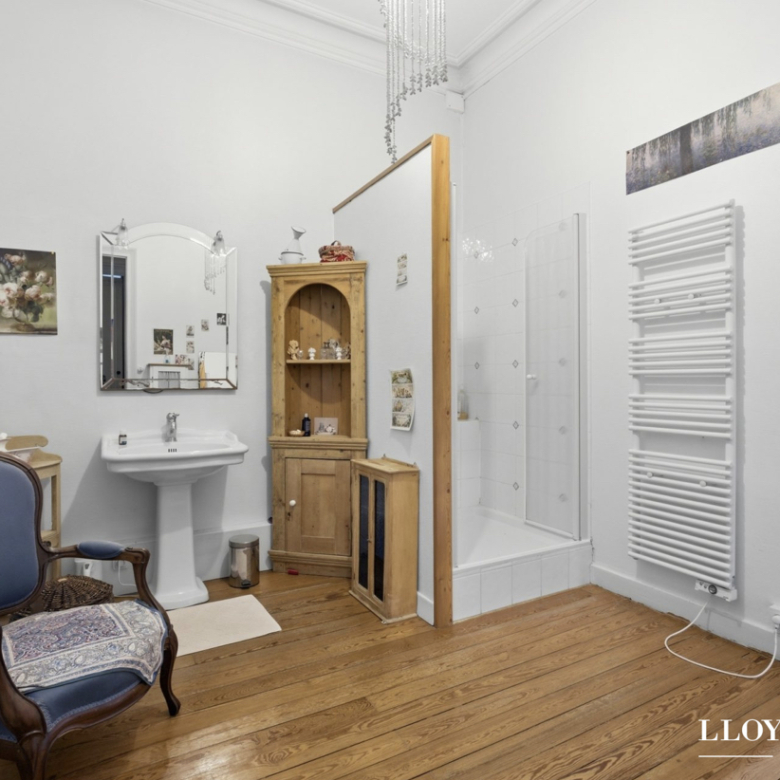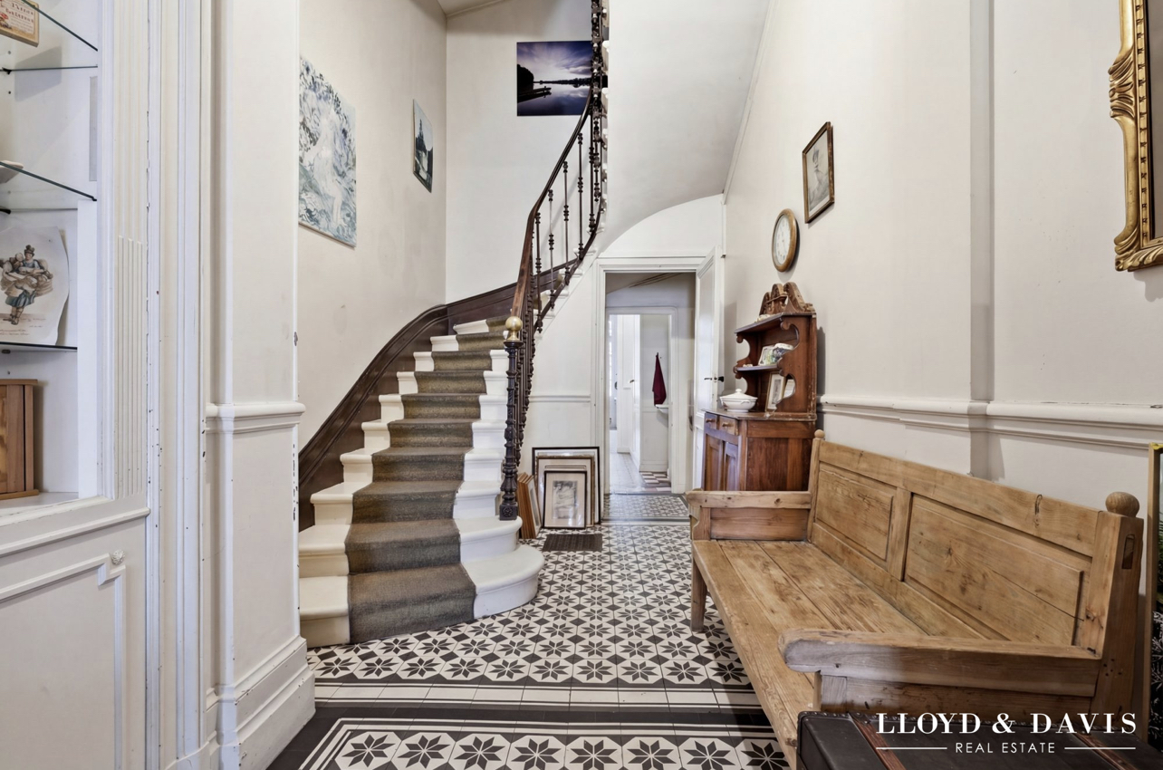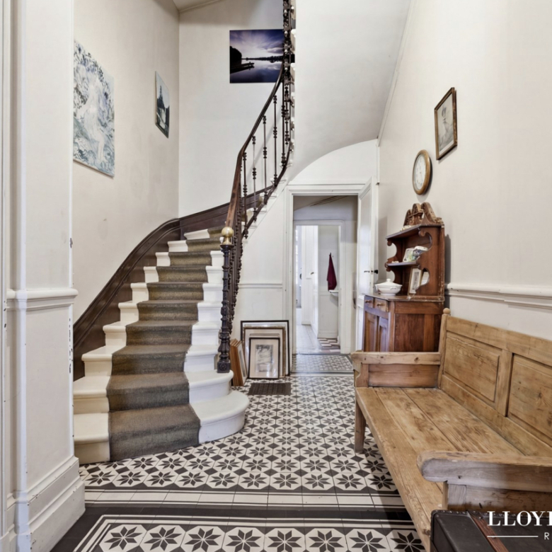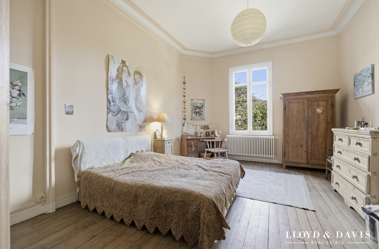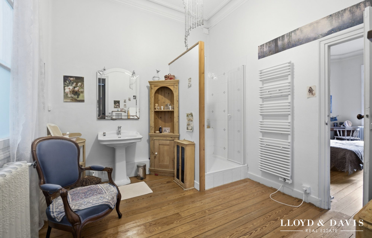 Cheminées, parquet massif, vitraux, hauteur sous plafond et moulures exceptionnelles s’apprécient à leur juste valeur dans cette maison hors du temps.