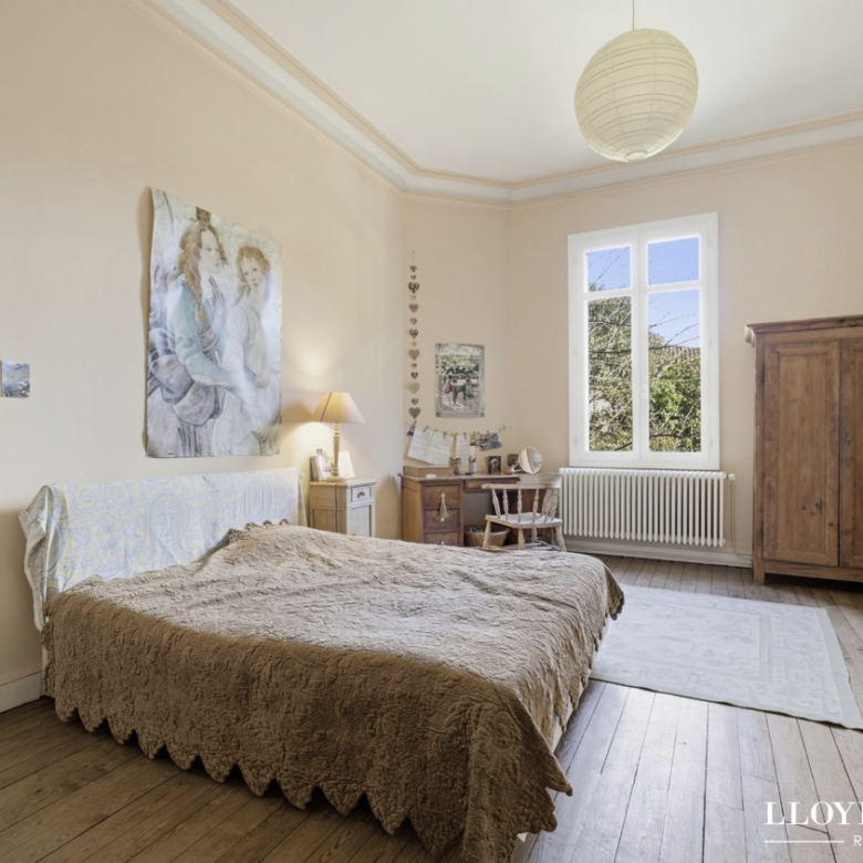 Le deuxième étage comprend 5 chambres de taille plus modeste ainsi qu’un grenier.La maison dispose aussi d’une grande cave.