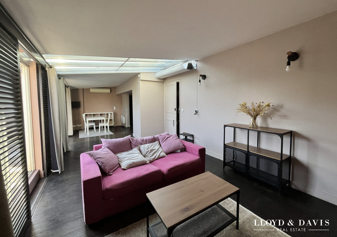 Situé au 4ème et dernier étage d’un bel immeuble en pierre, découvrez cet appartement de 85 m² carrez (105 m² au sol). L’entrée dessert une buanderie, un espace de rangement et la vaste pièce de vie lumineuse ouverte sur la terrasse de 14 m² exposée Sud et sans aucun vis-à-vis.