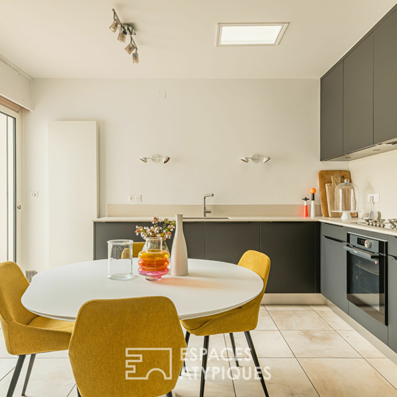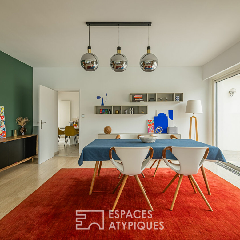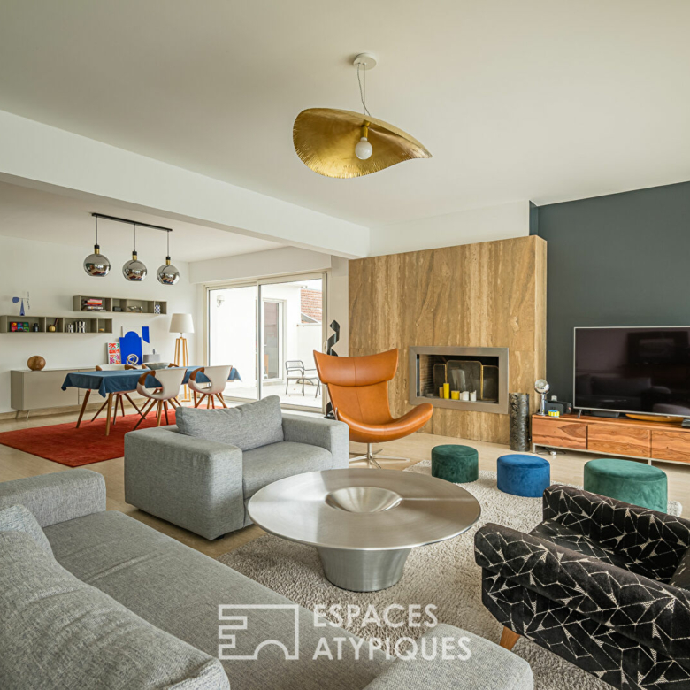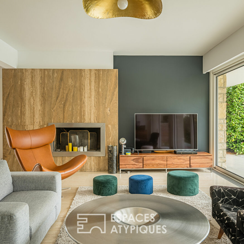 À seulement dix minutes à pied du centre-ville de Pessac, cette maison d’architecte iconique des années 70, entièrement rénovée, offre un cadre de vie rare mêlant volumes généreux, luminosité et confort moderne.