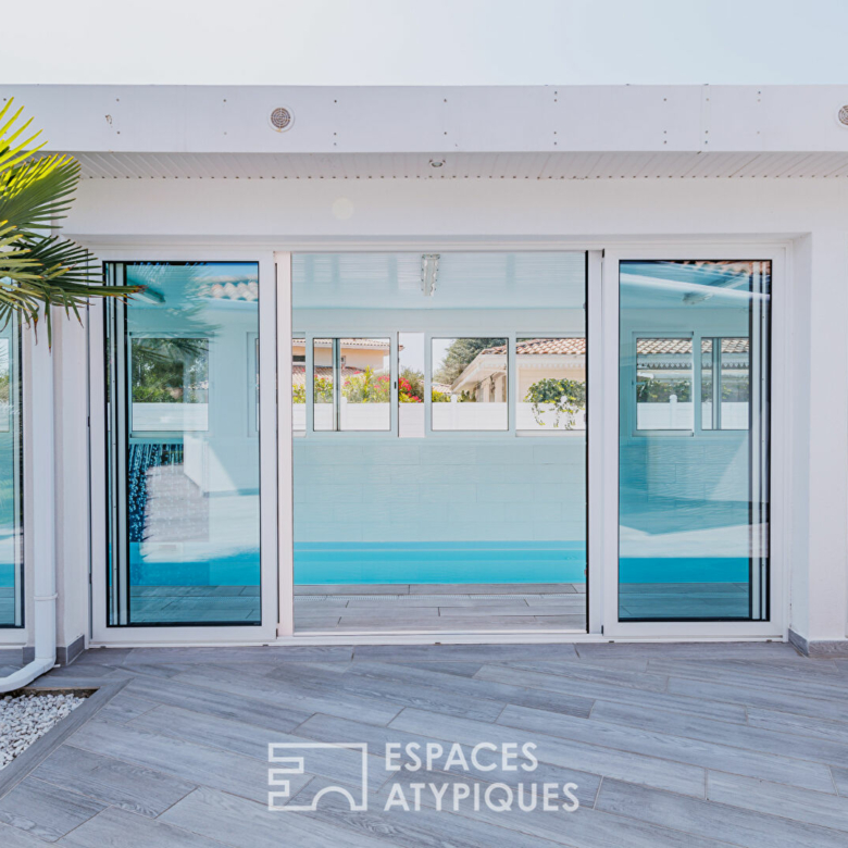 Pensée comme un véritable havre de bien-être, la propriété se distingue par un atout rare : un bassin de nage intérieur de 20 mètres, couvert, chauffé et baigné de lumière. Un espace hors norme, idéal pour pratiquer la natation tout au long de l’année, quel que soit le temps. Cet univers dédié à la détente s’étend sur plus de 70 m² et comprend également un sauna, une salle d’eau et un accès direct à la suite parentale pour une expérience de vie fluide et harmonieuse.