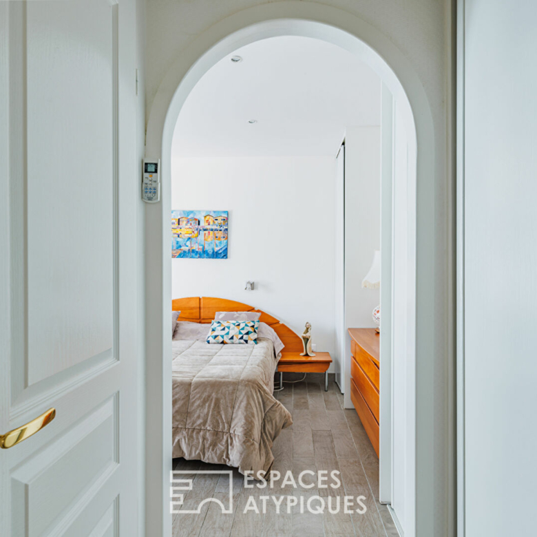 À l’écart, dans une aile dédiée à l’intimité, se découvre la suite parentale climatisée. Ce véritable cocon de près de 30 m² offre un dressing généreux, une salle d’eau lumineuse, des toilettes séparées, un accès direct à la terrasse, ainsi qu’un passage privilégié vers l’espace piscine.