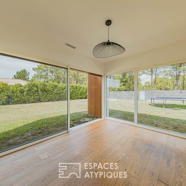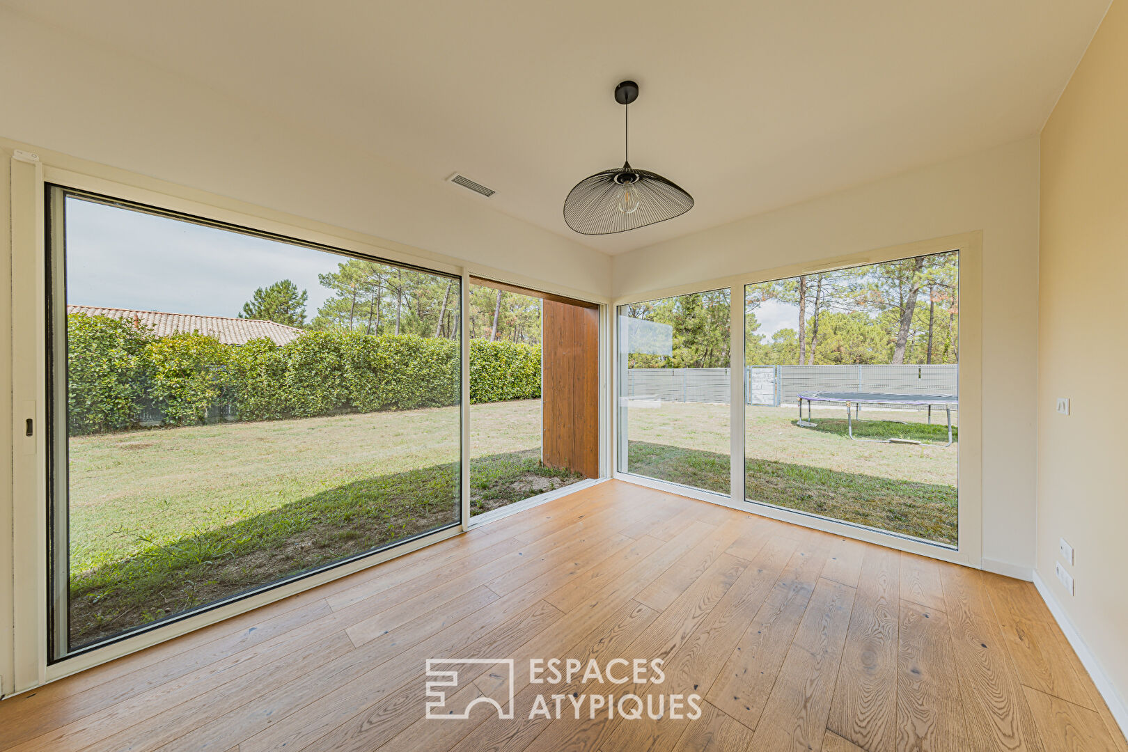 À proximité immédiate du bassin d’Arcachon, du lac de Cazaux , la maison bénéficie d’un accès rapide aux écoles, commerces, lacs et plages. Elle s’intègre parfaitement dans un cadre de vie paisible et qualitatif.