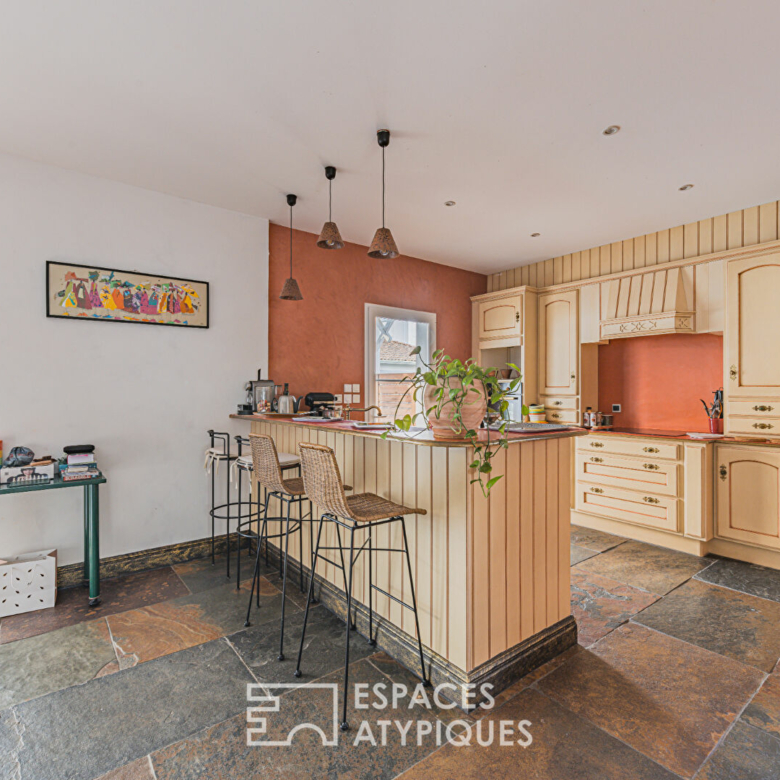 Dès l’entrée, la lumière naturelle inonde les espaces et révèle des volumes généreux, pensés pour le bien-être et la convivialité. Le vaste salon-séjour, baigné de soleil, s’ouvre sur une cuisine aménagée et équipée, parfaite pour partager des moments dans une atmosphère chaleureuse et raffinée. Dans le prolongement, une arrière cuisine alliant confort et practicité.